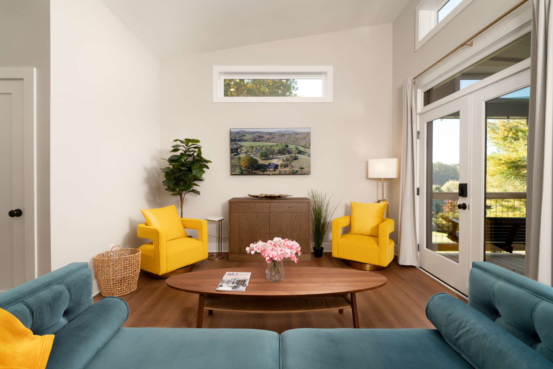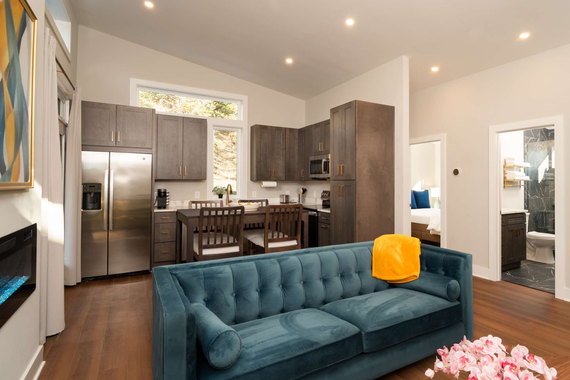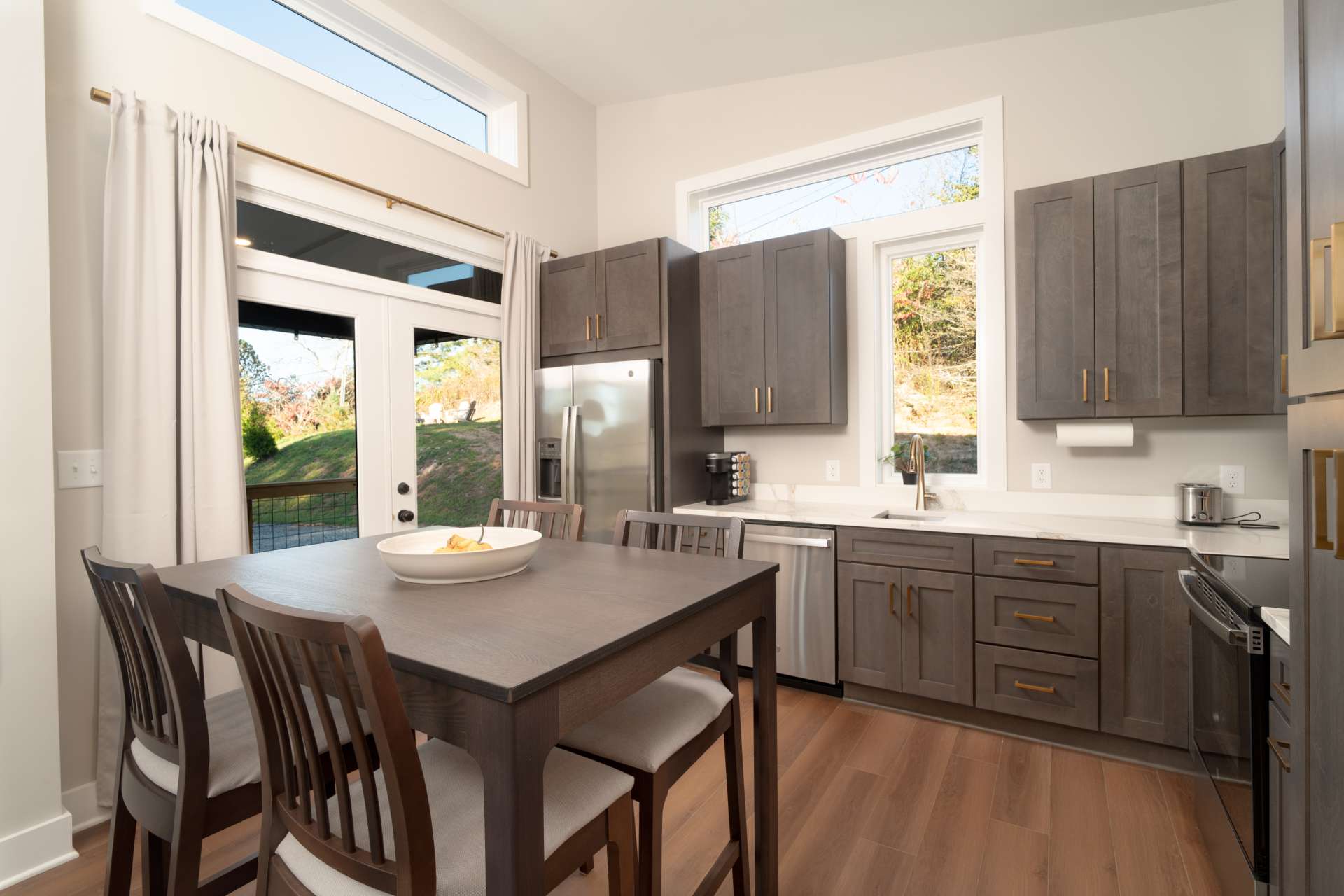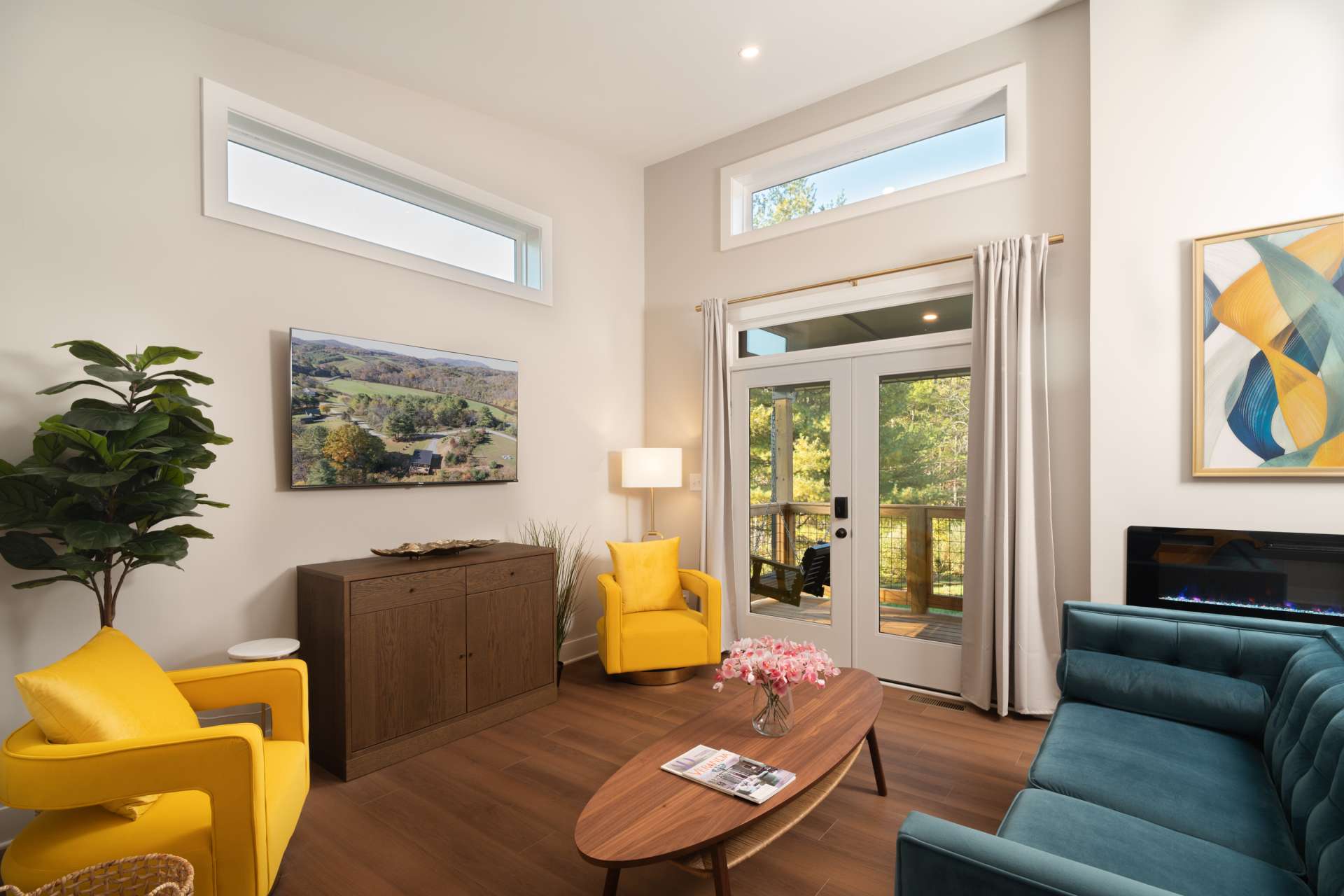This modern mountain home maximizes light and views. This 2-bedroom and 1 Bath home with large windows and vaulted ceilings throughout. Completed in 2025, the modern decor creates a sense of calm and allows you to focus on relaxation. Enjoy the views from both inside the home and outside on the 300 sq ft deck overlooking rolling mountains and long-range peaks in the distance. The front porch is a great spot for sunsets, and the adjacent fire pit area with Adirondack chairs is a great place for connecting with friends and family while roasting marshmallows and stargazing. The home features an open concept living room with dining and gourmet kitchen, all with vaulted ceilings. The kitchen has expansive cabinet space, GE stainless steel appliances, and quartz countertops. The two equally sized bedrooms feature nice-sized closets and sliding doors to access the deck. The bathroom is sleek and modern with quartz countertops and porcelain tile floors, and a shower. The home is fully furnished and comes complete with a fully stocked kitchen and bed, and bath linens. Short-term rentals are allowed, and the home is currently on AirBNB. The New River is within walking distance and is well known for its multiple recreation opportunities, including kayaking, tubing, and fishing. Call for more information or a private viewing of our listing W142.