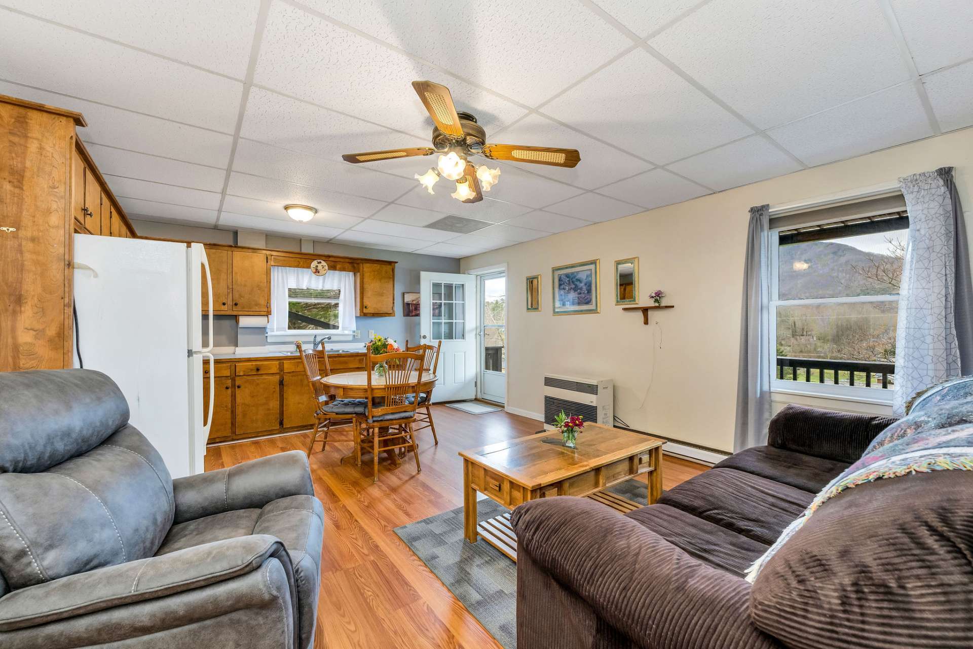 This 2-bedroom, 1.5 Bathroom single-level living and a separate income-producing apartment, make this Jefferson home a standout opportunity. Enjoy beautiful views of Mount Jefferson and Mount Paddy from the main living area and spacious back decks. The main level offers comfortable single-level living with an open living and dining area filled with natural light centered around a cozy wood-burning fireplace. The kitchen features a charming bay window, while the welcoming front porch adds to the home’s inviting character. This level includes two bedrooms, one and a half baths, and a one-car garage. The finished lower-level apartment provides excellent rental potential with two bedrooms, one bath, a full kitchen, a living area, a laundry, and its own private deck. Both short-term and long-term rentals are permitted. The two levels are completely separate with private exterior entrance, electric meter, water, and heat - with no interior connection, creating an ideal setup for rental income, guests, or multi-generational living. The property includes ample parking and a spacious backyard highlighted by a beautiful mountain backdrop. Located in a quiet neighborhood just minutes from Ashe County Park, enjoy walking trails, disc golf, playgrounds, and summer music events. A short drive brings you to the shops, restaurants, and galleries of Downtown West Jefferson and Historic Lansing. Wonderful memories on the New River await nearby for those who enjoy the outdoors, fishing, tubing, and kayaking. Boone’s additional dining, shopping, skiing, and entertainment are less than an hour away. Recent updates include a new roof installed in 2024 and a survey on file. Weekly trash pickup available. Call for more information on our listing M181.