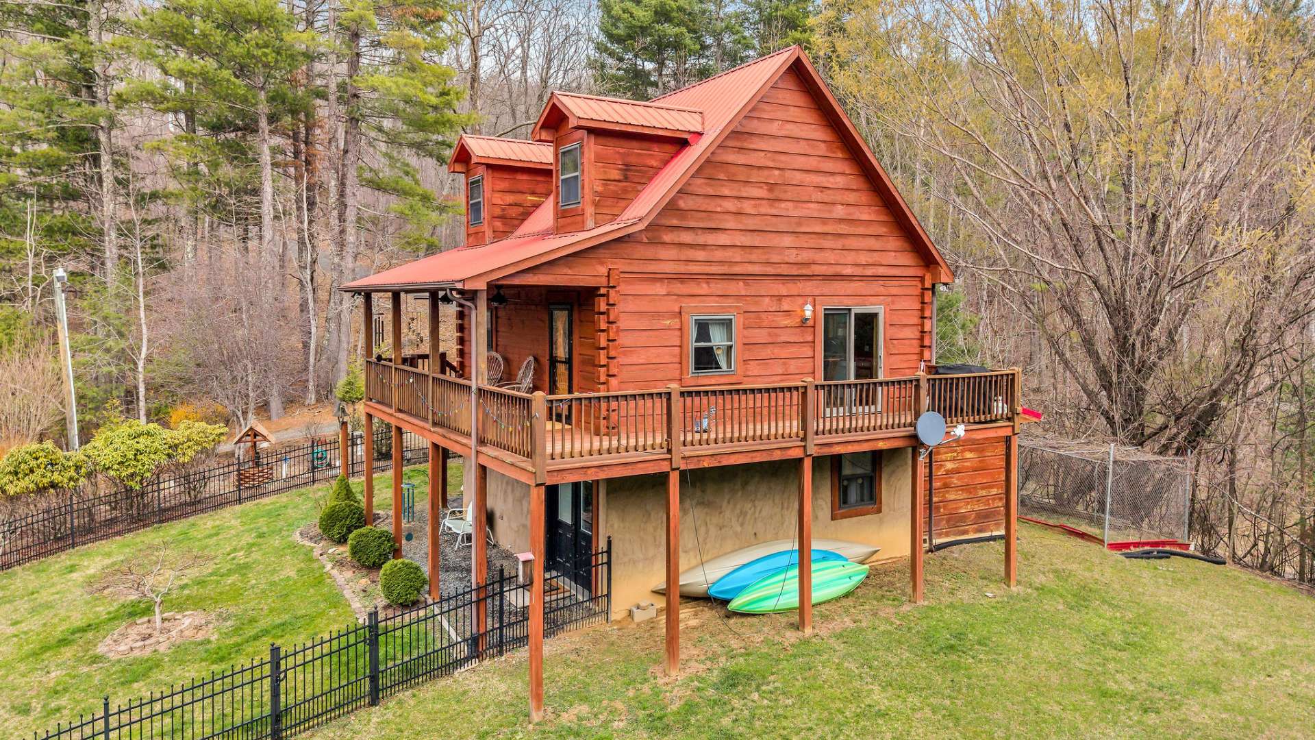 Tucked away in the trees and full of personality, this is the kind of mountain cabin buyers are always hoping to find. Affordable, charming, and packed with features, this 2-bedroom, 2-bath hidden gem sits in a sought-after river community with access to the New River, giving you instant entry to kayaking, tubing, fishing, and laid-back days by the water. Perched on a hilltop, the cabin welcomes you with mountain views from the covered porch—the perfect spot for morning coffee or winding down after a day outdoors. The setting feels private and peaceful, with a tree-lined yard, flowing greenery, and that “tucked into the woods” vibe everyone craves. There’s even fenced yard space for pets, plus room to garden and enjoy the outdoors. Inside, you’ll find a warm and inviting interior with soaring ceilings, rich wood finishes, and an open floor plan that feels both cozy and inviting. The main level features a fully equipped kitchen, a comfortable living area with a gas fireplace, and a bedroom with a shared full bath—easy, functional living on one level. Upstairs, a sleeping loft adds extra charm and flexibility. Need more space? The partially finished walk-out lower level is ready for whatever you envision—overflow sleeping, a game room, or additional living space—complete with a full bathroom and laundry/storage area. Outside, the property truly shines with ample storage options, including an outdoor shed, additional storage off the cabin, and space for all your mountain gear—kayaks, tubes, fishing equipment, tools, and more. A carport adds everyday convenience. The community river access is a standout feature, offering a covered pavilion, gathering space, and easy entry into the New River—perfect for making memories with family and friends. Located just 20 minutes from West Jefferson, you’re close to dining, shopping, and everything this vibrant mountain town has to offer—while still enjoying your own private retreat. Offered mostly furnished (with exceptions), this is a turnkey opportunity to start enjoying mountain life right away. Whether you're searching for a full-time home or weekend escape, this Blue Ridge Mountain cabin checks all the boxes. Don’t miss your chance—schedule your showing today for our listing E178, and experience this mountain retreat for yourself before it’s gone.