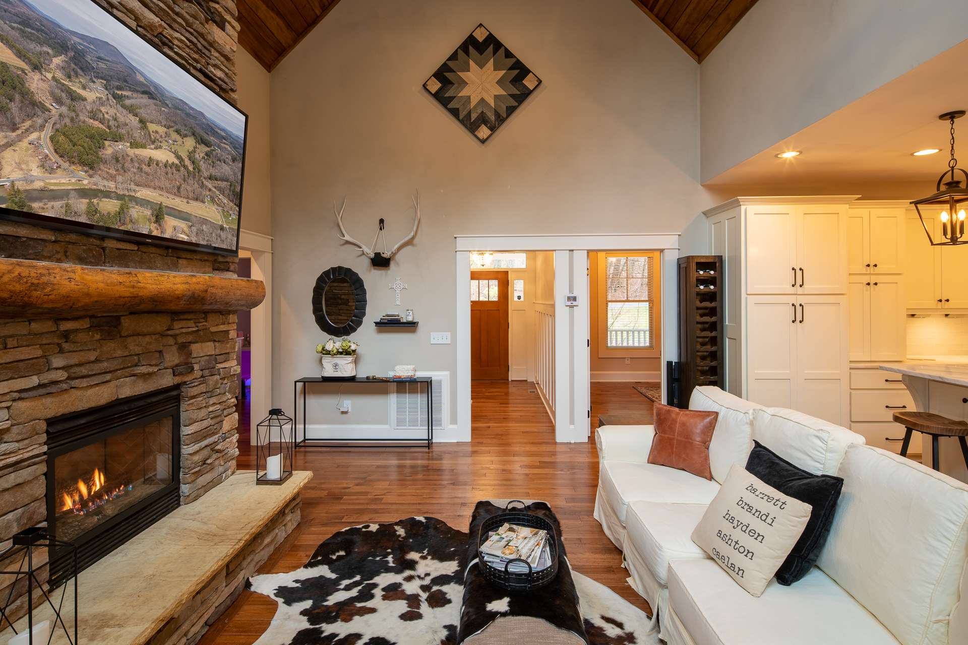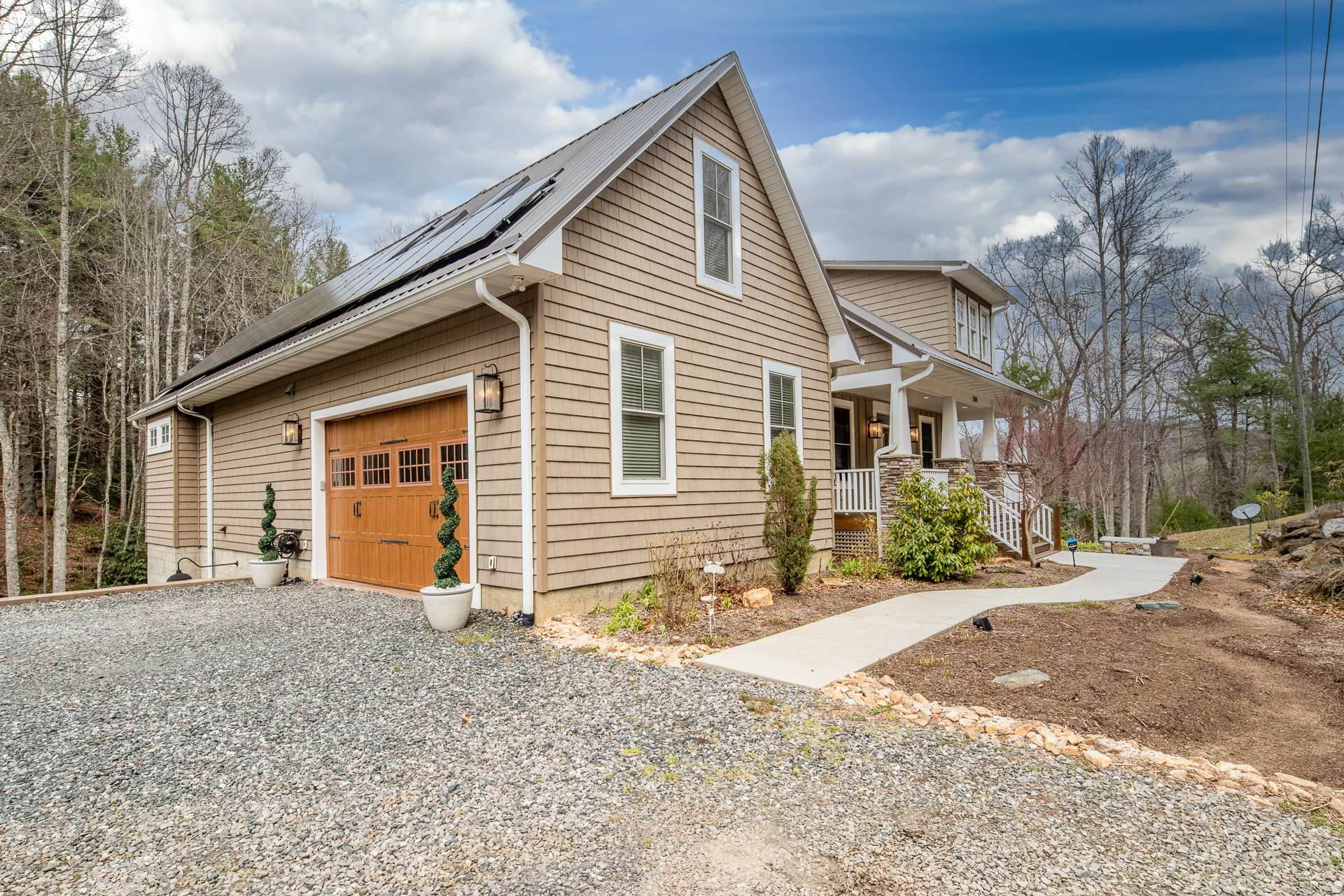 CRAFTSMAN STYLE MOUNTAIN HOME CLOSE TO NEW RIVER! This extraordinary home was originally built to be a forever home offering lots of bells and whistles. The exterior features metal roof, high-quality vinyl shakes, Hardiplank board and batten siding, Trex decking, all requiring little maintenance, and recently installed solar panels to offset the electric bill. The lawn is beautifully landscaped with large boulders, plants & shrubs. The main level offers a spacious open living and kitchen area with a 2-story stone fireplace, high windows, and tongue and groove vaulted ceiling; a dream kitchen with custom cabinetry, granite countertops, gas range with dual fuel double oven and pot filler; a dining room with tray ceiling (currently used as a bedroom); primary suite offering a private bath with double vanity, large tile shower with 4 shower heads, huge walk-in closet with built-in storage and dressing table; two additional bedrooms, full bath, and laundry room. The upper level provides a bonus room suitable for home office. The lower level features a huge open area for family or recreation room, a full bath, tons of storage, and workshop. With minimal work, this space could easily be utilized as separate living quarters for extended family. Enjoy the great outdoors on the covered front porch or expansive and private deck out back (both covered & open). The location is convenient for water recreation on the New River and shopping or dining in downtown West Jefferson. Call today for additional information on our listing D187.