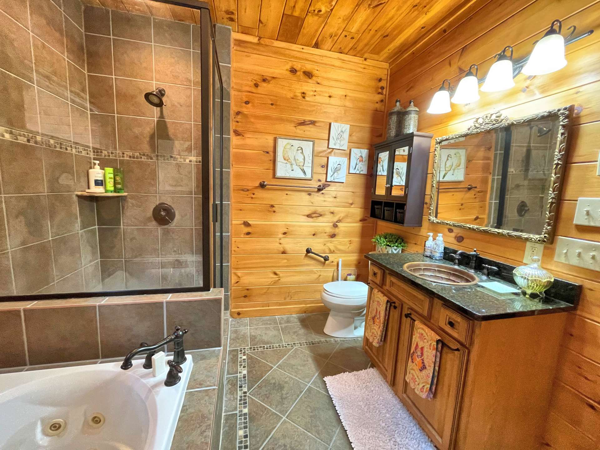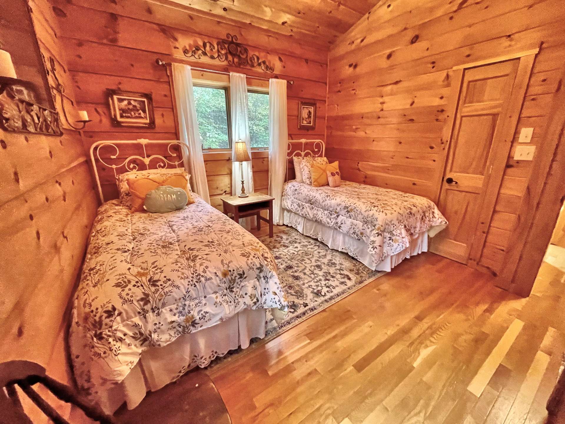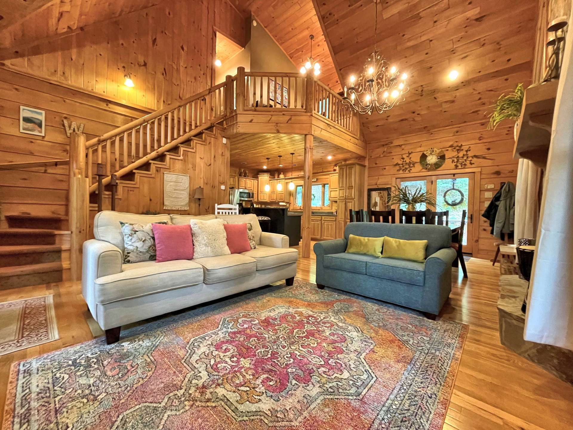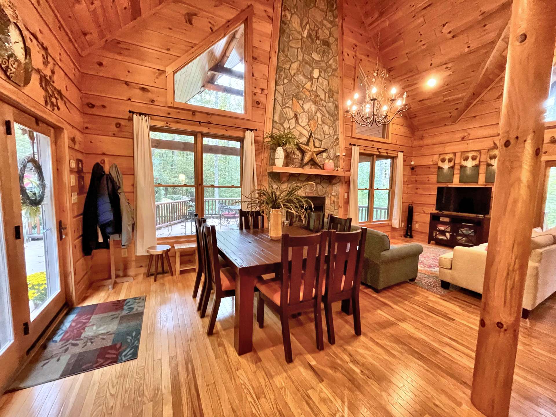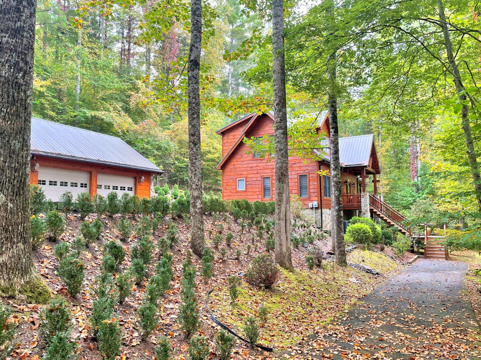 Furnished log cabin in the Lansing area of the NC Mountains – the Ultimate Dream Mountain Retreat! Nestled in the serene Woodlands neighborhood, this stunning 3-bedroom, 2.5-bath home offers the perfect blend of mountain tranquility and convenient access—just 7.5 miles from downtown West Jefferson and 30 miles from Boone. From the moment you arrive, you'll be surrounded by peaceful forest views and a sense of calm that only the mountains can provide. Enjoy nature year-round from multiple outdoor living spaces, including a covered deck with a cozy wood-burning fireplace (firewood included), or unwind under the stars on the beautifully landscaped patio beside a custom garden shed. In autumn, the vibrant foliage creates a magical setting, and in winter, the trees reveal lovely mountain views. The landscaping surrounding the house is nothing like you've ever seen, with multiple stone pathways and a myriad of different plantings. Inside, this well-crafted home features 3 bedrooms and 2.5 bathrooms, including a main-level primary suite. Oak hardwood floors run throughout the home, with tile in the bathrooms for a polished, durable finish. The kitchen features granite countertops, stainless steel appliances, and a large window that overlooks the scenic landscape. An open-concept family and dining room is anchored by a dramatic floor-to-ceiling stone fireplace (gas-burning) and open staircase leading to two upstairs guest rooms, a full bath, and a versatile office loft. Outside, meticulous landscaping enhances the natural beauty of the property, which also includes a 10x12 custom shed and a spacious 24x28 two-car detached garage. The owners have meticulously maintained the home with a new HVAC in 2023 and full exterior staining in Spring 2025. This mountain home comes mostly furnished, and short-term rentals are allowed. Call today for additional information or an appointment to view our listing W138.