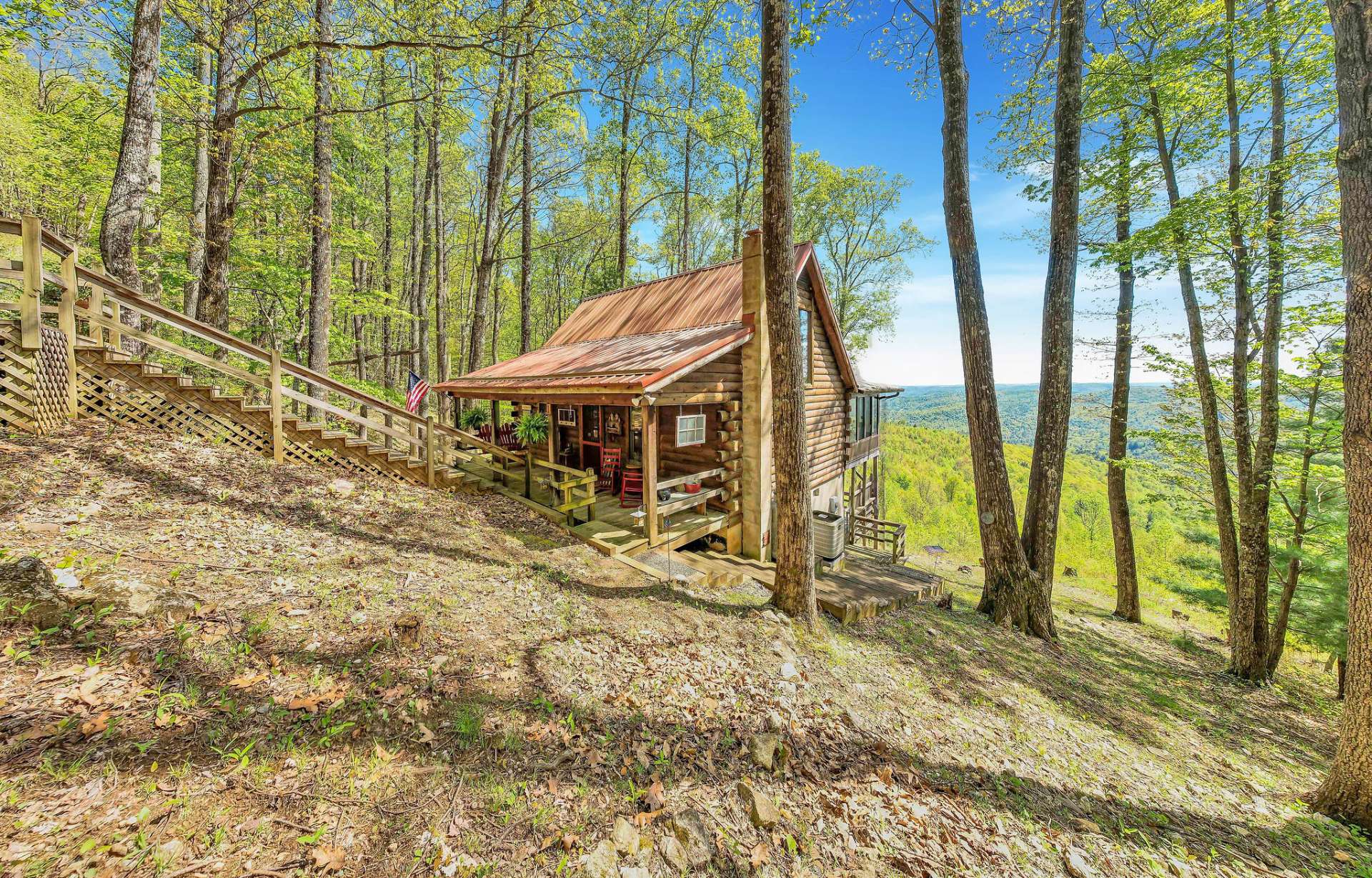 Prepare to be "wowed" as you step into this incredibly well-kept and decorated cabin with HUGE long-range views! Situated just 1 mile off the Blue Ridge Parkway at 2900 ft in elevation and just below some of its most scenic overlooks, you'll find all the peace and serenity only the mountains can provide! Being sold fully furnished indoors and out, the homeowners have lovingly decorated and updated the cabin over the many years that they have enjoyed it. The main level features an open great room and kitchen with soaring vaulted ceilings, the primary bedroom, a bath, and a bright and airy sunroom to take in the views. Up the spiral stairs, there's a cozy guest bedroom. Outside there's a front porch running the length of the cabin with cozy red rockers, a swing, and the front deck area featuring another cozy sitting area with a swing and chairs to take in the view. There's also a fire pit area to enjoy on those chilly summer nights when you just want to extend your time outside into the evening. The location is just a short 13-mile drive from West Jefferson and 23-28 miles to Boone and Blowing Rock. No restrictions! Short-term rentals are allowed! Turn key opportunity for a vacation rental investment. Call today for additional information or your private viewing of our listing V116.