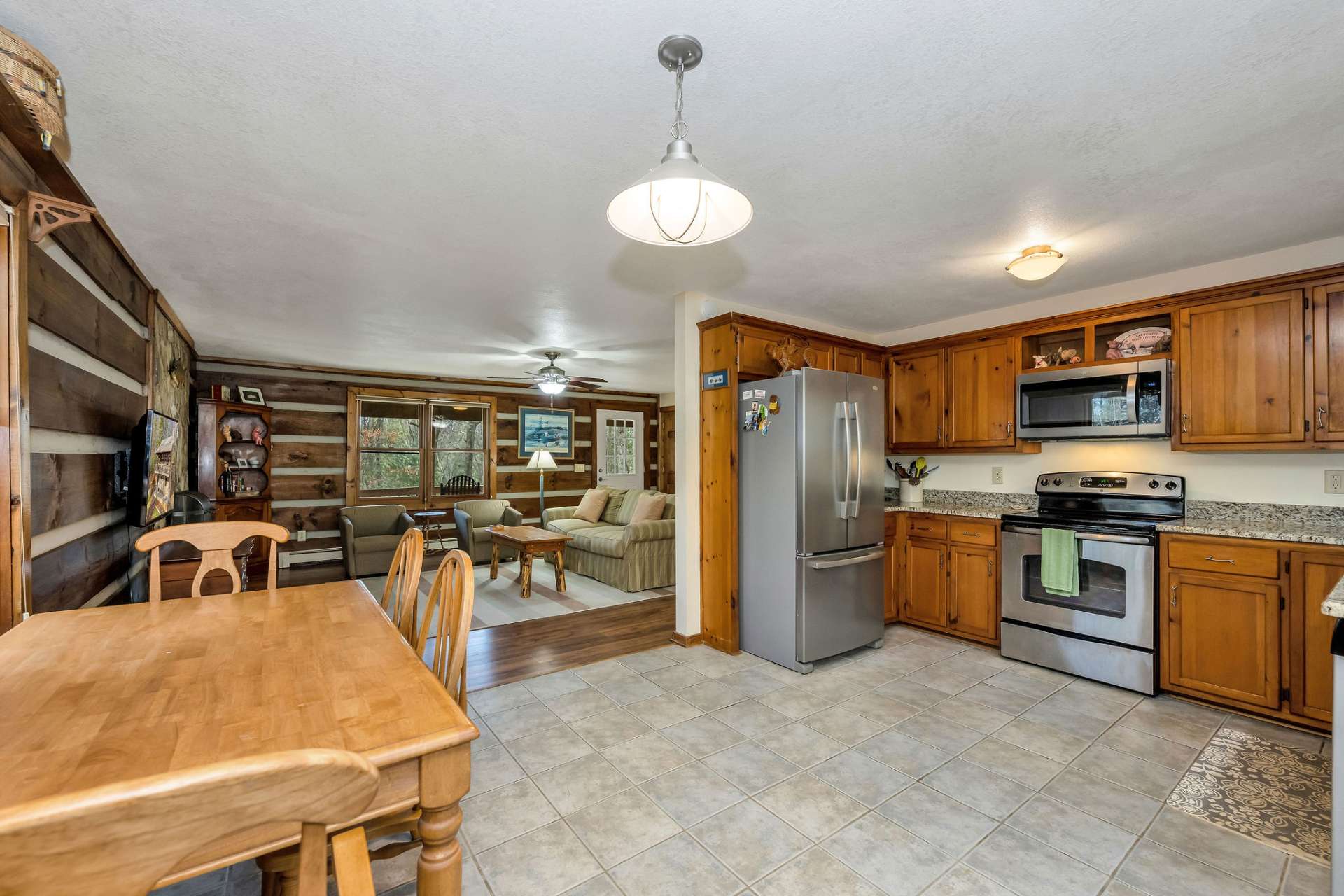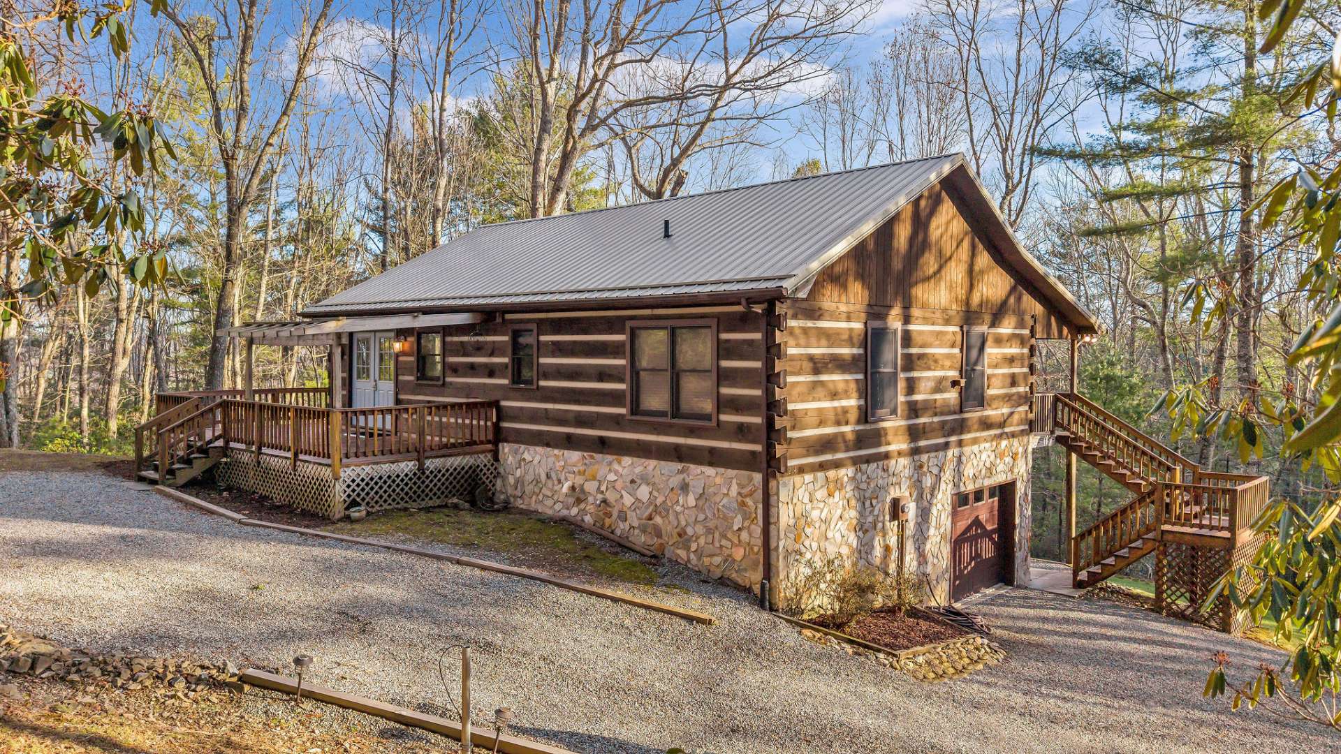Turn-Key Mountain Cabin Retreat. If you’ve been dreaming of a true mountain escape, this is it. Tucked into the trees just 20 minutes from West Jefferson, this cozy 2-bedroom, 2-bath log cabin delivers the perfect mix of privacy, comfort, and classic mountain charm. From the moment you arrive, you’re surrounded by nature—towering trees, blooming rhododendrons, and thoughtfully maintained gardens that make this property feel like your own private retreat. Inside, the main level welcomes you with a spacious great room anchored by a wood-burning fireplace and filled with natural light from every angle. The kitchen is both stylish and functional, featuring granite countertops, stainless appliances, and plenty of cabinet space—ideal for everyday living or hosting. Step outside, and you’ll really feel it—whether you’re rocking on the covered front porch or grilling on the back deck, this home was made for relaxing and entertaining in the fresh mountain air. Two comfortable bedrooms on the main level share a bath with double vanities and a walk-in tile shower. The lower level adds valuable flexibility with a hard-to-find garage, washer/dryer hookups, and an additional finished space currently used for overflow sleeping—perfect for guests, a game room, or extra storage (not counted in the total heated square footage). Offered fully furnished and turn-key (with only a few personal exclusions), you can start enjoying it from day one. Located near West Jefferson, known for its vibrant arts scene, local shops, breweries, and dining, and just minutes from the New River—one of the oldest rivers in the world, perfect for kayaking, fishing, and exploring. Whether you're looking for a full-time home, weekend getaway, or investment property, this one stands out. Don’t miss your chance to own this mountain retreat—schedule your showing today for our listing K168.