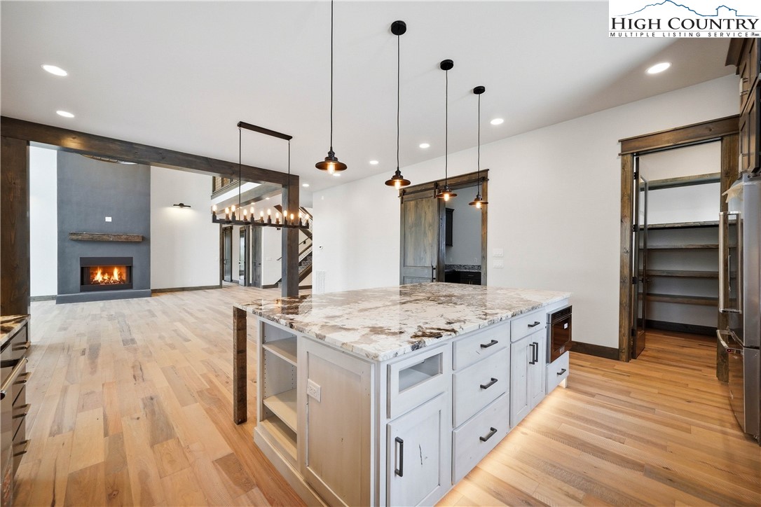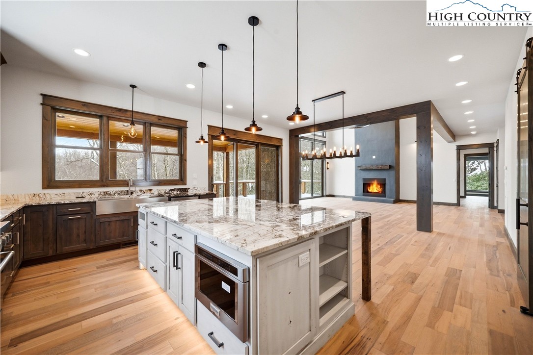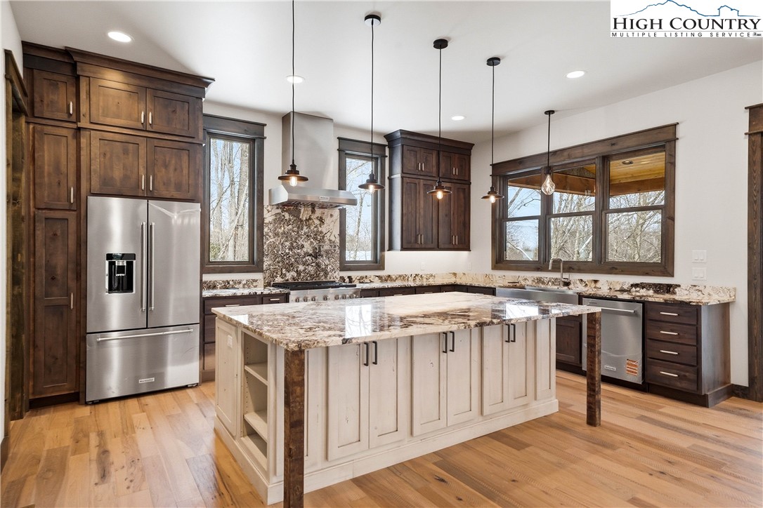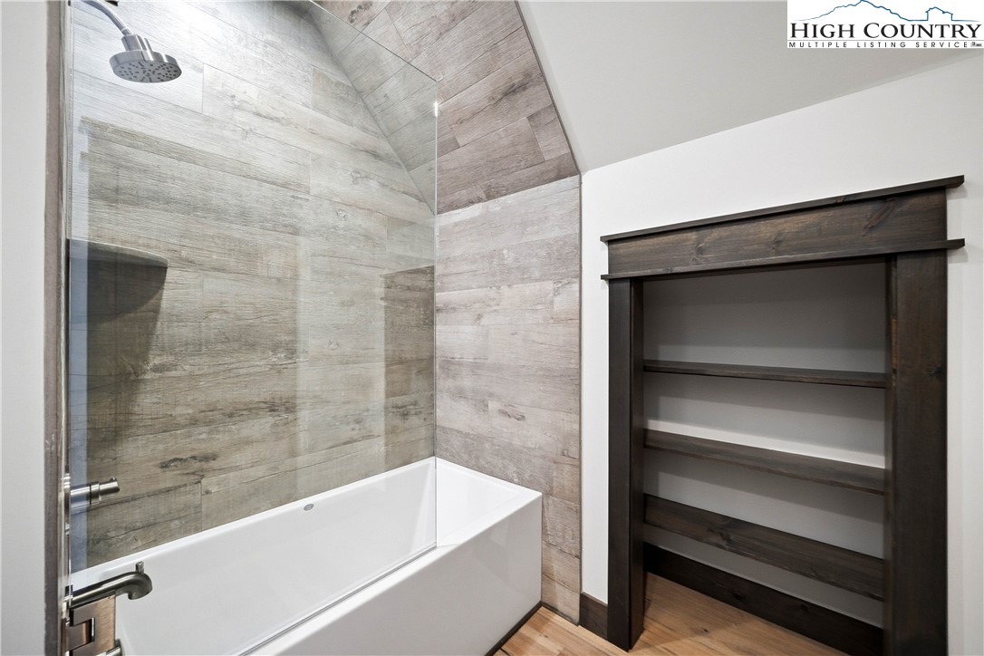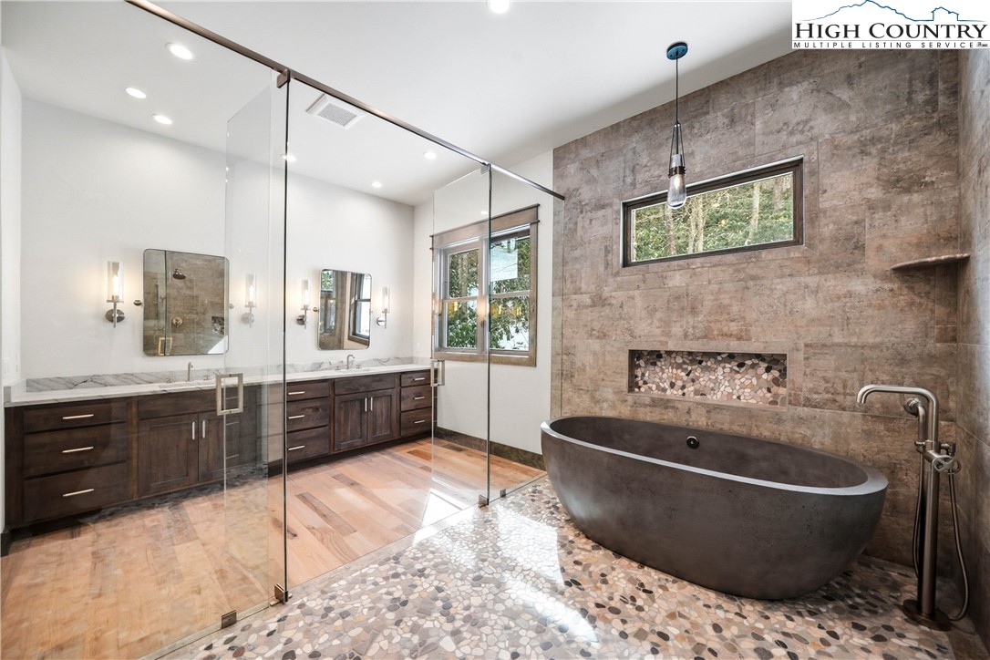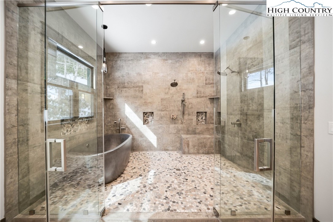 Have you been dreaming of owning a high-end custom home without the hassle, uncertainty and years of waiting? Look no further than this stunning modern mountain retreat, in the lovely Boulder Creek gated community, conveniently between Boone and Blowing Rock. Scheduled for completion in summer 2025, this home offers the unique opportunity to personalize select finishes, making it your own. Thoughtfully designed to embrace its breathtaking natural surroundings, the property showcases majestic boulder outcroppings and overlooks a serene creek with cascading waterfalls, providing the tranquil sound of rushing water. Upon entering the vaulted great room, you'll be captivated by the soaring 25-foot wall of windows, flooding the space with natural light, and a striking two-story stucco and barnwood gas fireplace. The open-concept chef’s kitchen is a masterpiece, featuring a massive island, a 45-inch farmhouse sink and custom cabinetry extending to the ceiling. The main-level primary suite is a sanctuary with an expansive 33-foot custom closet. The spa-like primary en-suite bath is an absolute showstopper, featuring a luxurious 8-by-11-foot wet room with walk-in shower and an elegant Native Trails Stone soaking tub. Upstairs, you'll find a versatile bonus room, ideal as a second primary suite, game room or office, along with two additional bedrooms connected by a Jack-and-Jill bath. The lower level presents another flexible living space, which can serve as another primary suite, entertainment area, home office or gym, and seamlessly extends to a spacious deck, well suited for a hot tub. Additional rooms on this level offer the potential for a home theater, playroom or extra storage. An attached oversized two-car garage completes this remarkable home. Don’t miss this rare opportunity to own a new, luxury mountain retreat in time to enjoy this summer! Schedule your tour today and start envisioning your dream home in Boulder Creek.