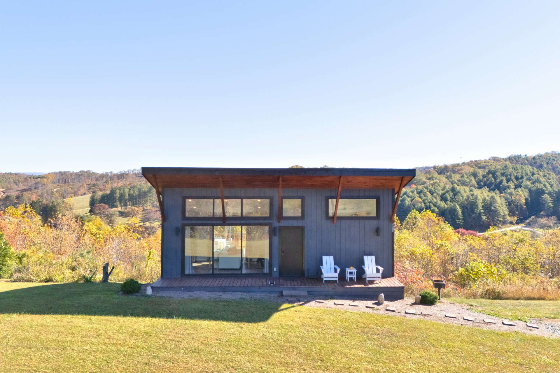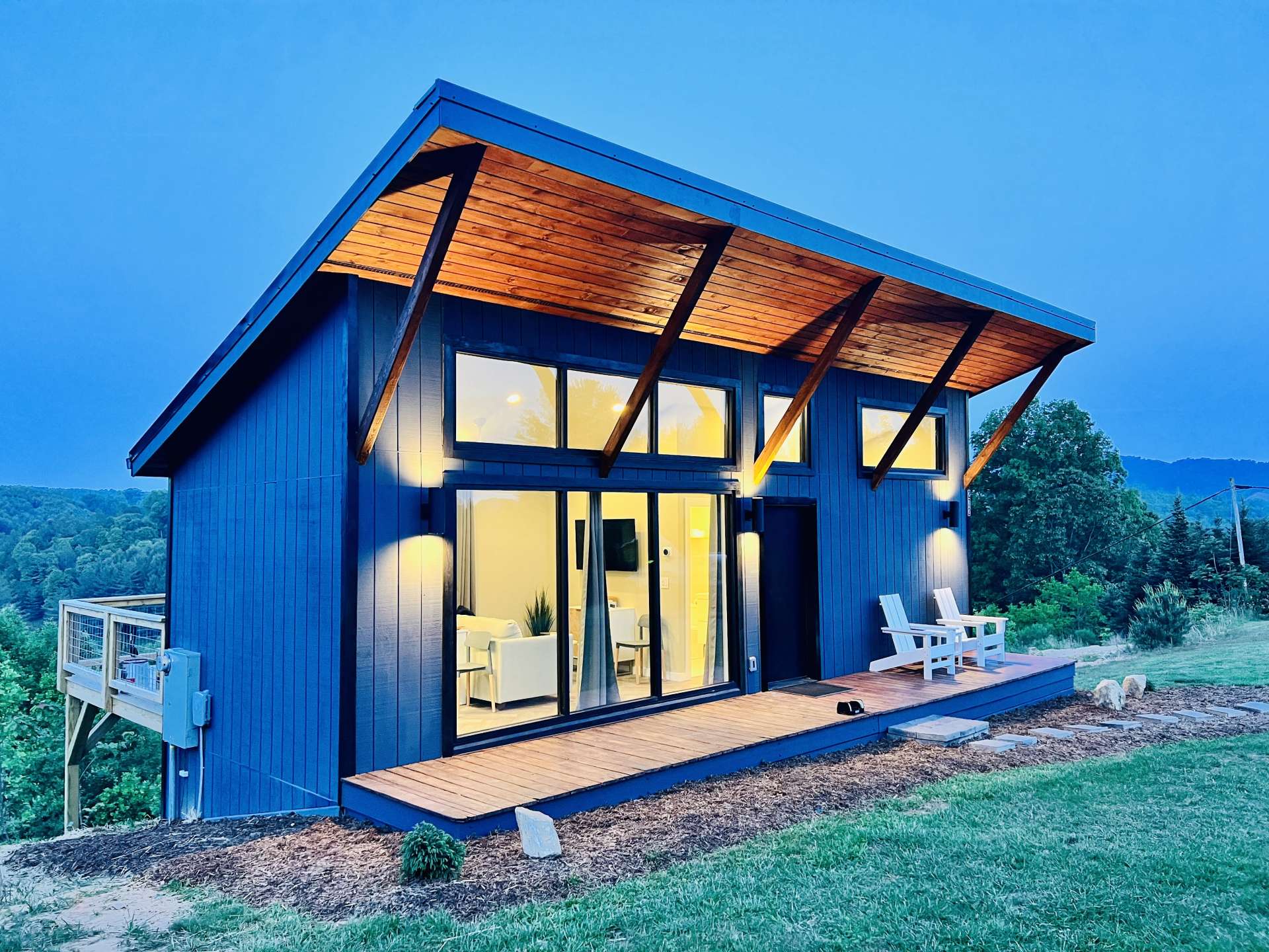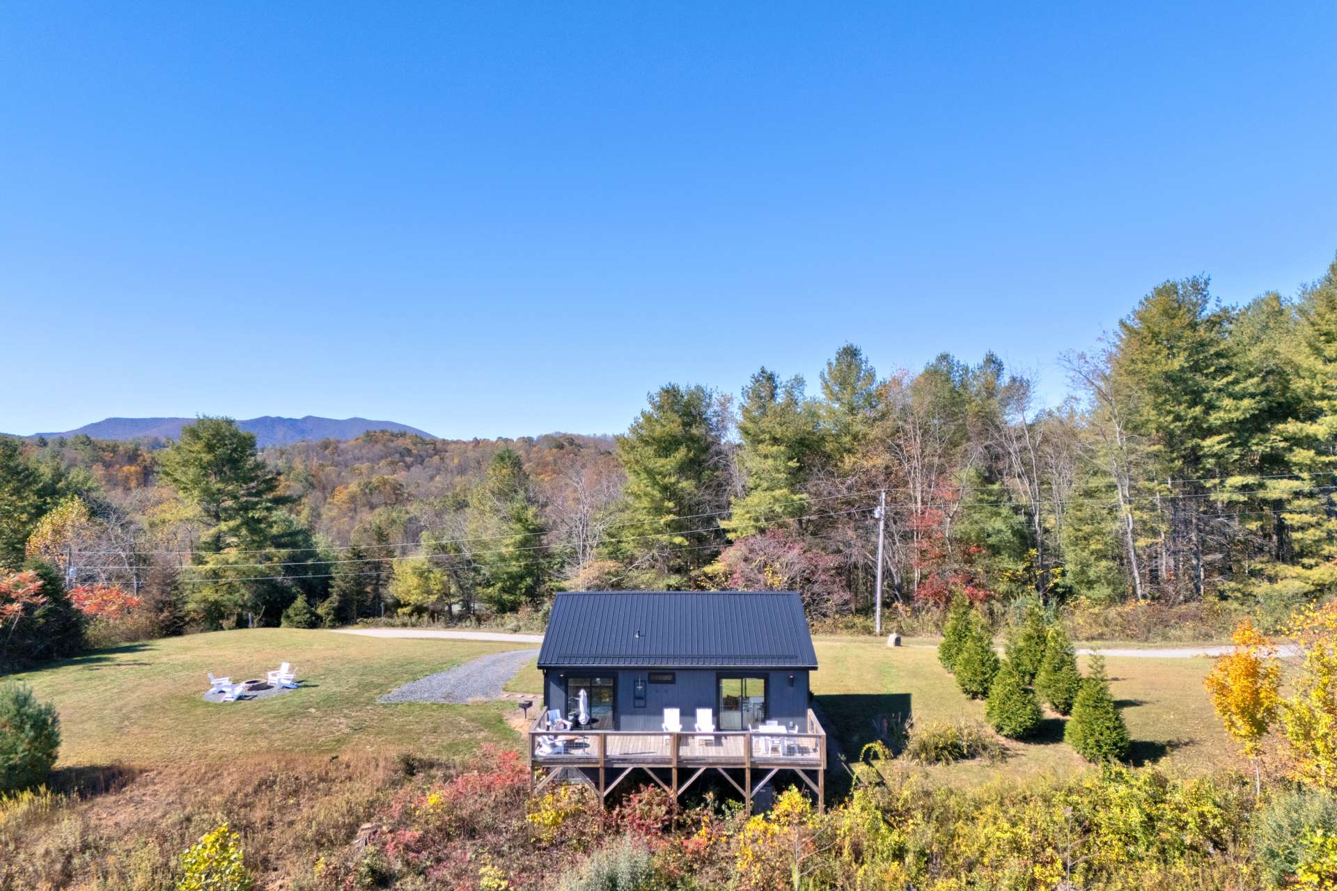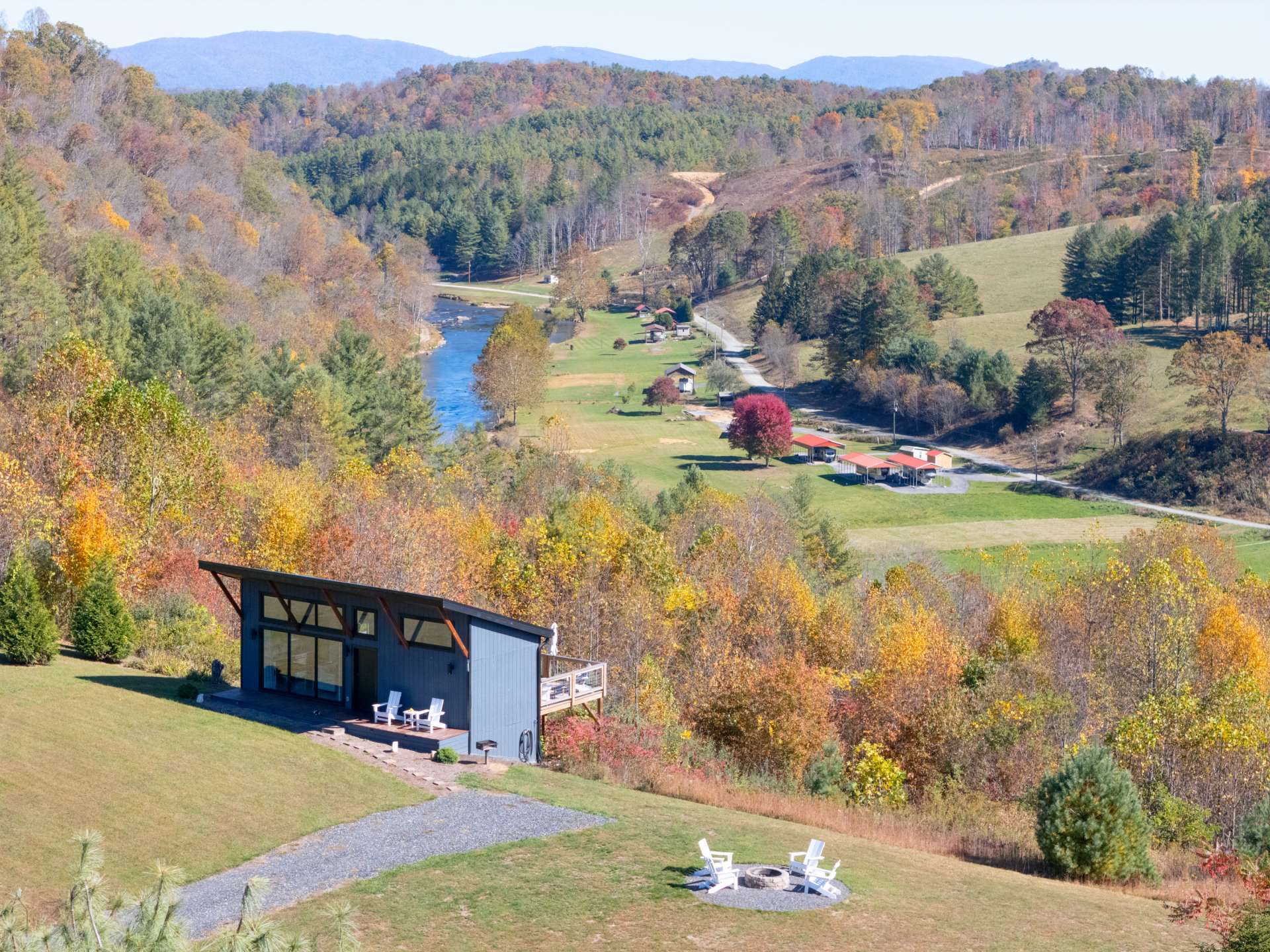 The mountains are calling, and this modern retreat is the quintessential getaway spot! Perched on a ridge overlooking the surrounding Blue Ridge Mountains and the New River, you'll feel as if you're stepping onto the edge of the world the moment you walk in this modern 1-bedroom, 1-bath cabin. The floor-to-ceiling windows invite nature in, seamlessly blending the indoors with the stunning surroundings. Every detail has been thoughtfully designed to create a luxurious, private escape you’ll return to time and time again. Whether you're relaxing in the living room, resting in the cozy bedroom, or lounging on the oversized back deck, the long-range mountain and river scenery is always in sight. The entire space is on one level and sits on 1.5 acres of rolling mountain land that gives you plenty of outdoor space to enjoy. Spot your favorite constellations and shooting stars sitting by the fire pit, play catch in the yard, or simply relax on the back deck. The NC Mountain home comes luxuriously furnished, and everything is included right down to the dishes and linens. All you have to do is pack a bag! The home has been a highly successful Airbnb and would most probably pay for itself should you want to continue with rentals. The New River is within walking distance for kayaking, tubing, and fishing, and hiking abounds with Grayson Highlands State Park just one of many parks nearby. Don't let this opportunity pass you by, book your showing today for our listing W140!