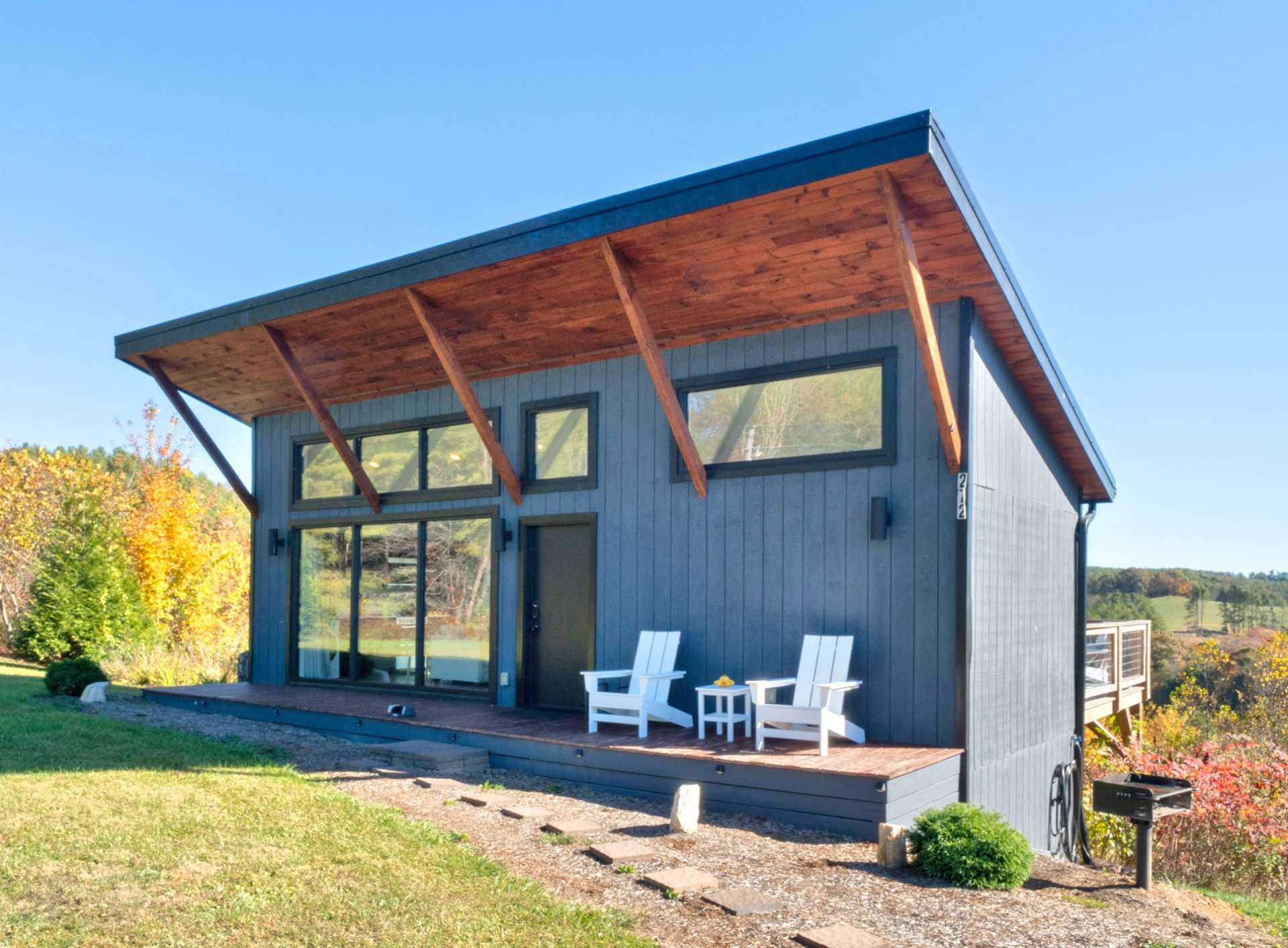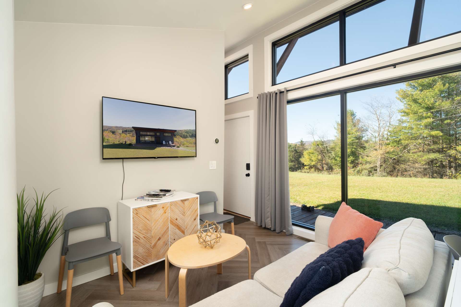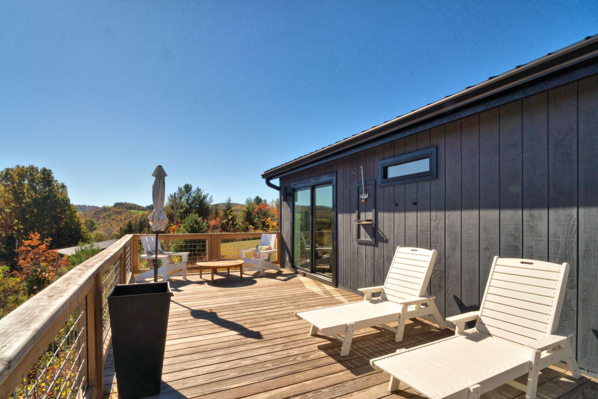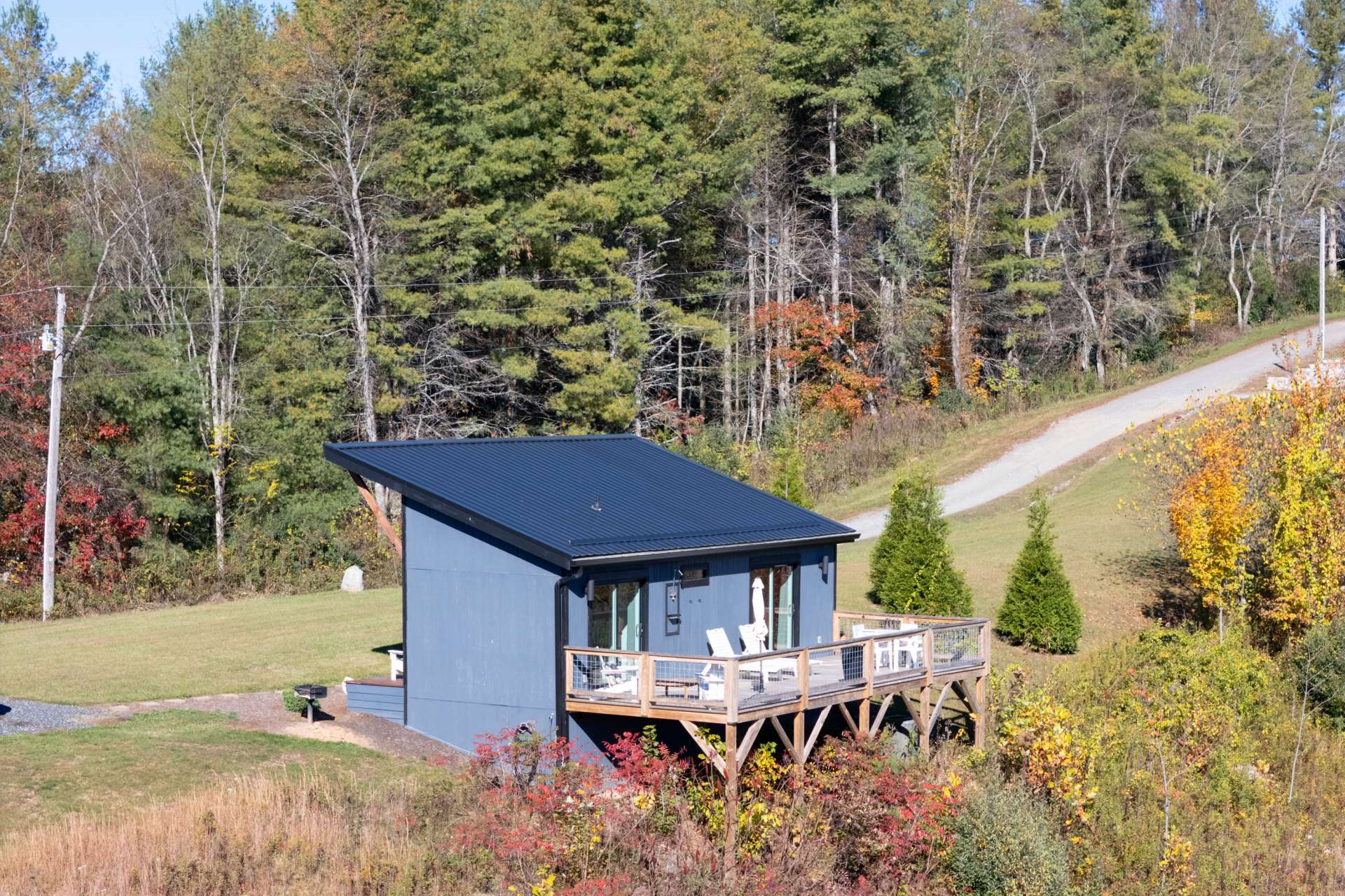The mountains are calling, and this modern retreat is the quintessential getaway spot! Perched on a ridge overlooking the surrounding Blue Ridge Mountains and the New River, you'll feel as if you're stepping onto the edge of the world the moment you walk in this modern 1-bedroom, 1-bath cabin. The floor-to-ceiling windows invite nature in, seamlessly blending the indoors with the stunning surroundings. Every detail has been thoughtfully designed to create a luxurious, private escape you’ll return to time and time again. Whether you're relaxing in the living room, resting in the cozy bedroom, or lounging on the oversized back deck, the long-range mountain and river scenery is always in sight. The entire space is on one level and sits on 1.5 acres of rolling mountain land that gives you plenty of outdoor space to enjoy. Spot your favorite constellations and shooting stars sitting by the fire pit, play catch in the yard, or simply relax on the back deck. The NC Mountain home comes luxuriously furnished, and everything is included right down to the dishes and linens. All you have to do is pack a bag! The home has been a highly successful Airbnb and would most probably pay for itself should you want to continue with rentals. The New River is within walking distance for kayaking, tubing, and fishing, and hiking abounds with Grayson Highlands State Park just one of many parks nearby. Don't let this opportunity pass you by, book your showing today for our listing W140!