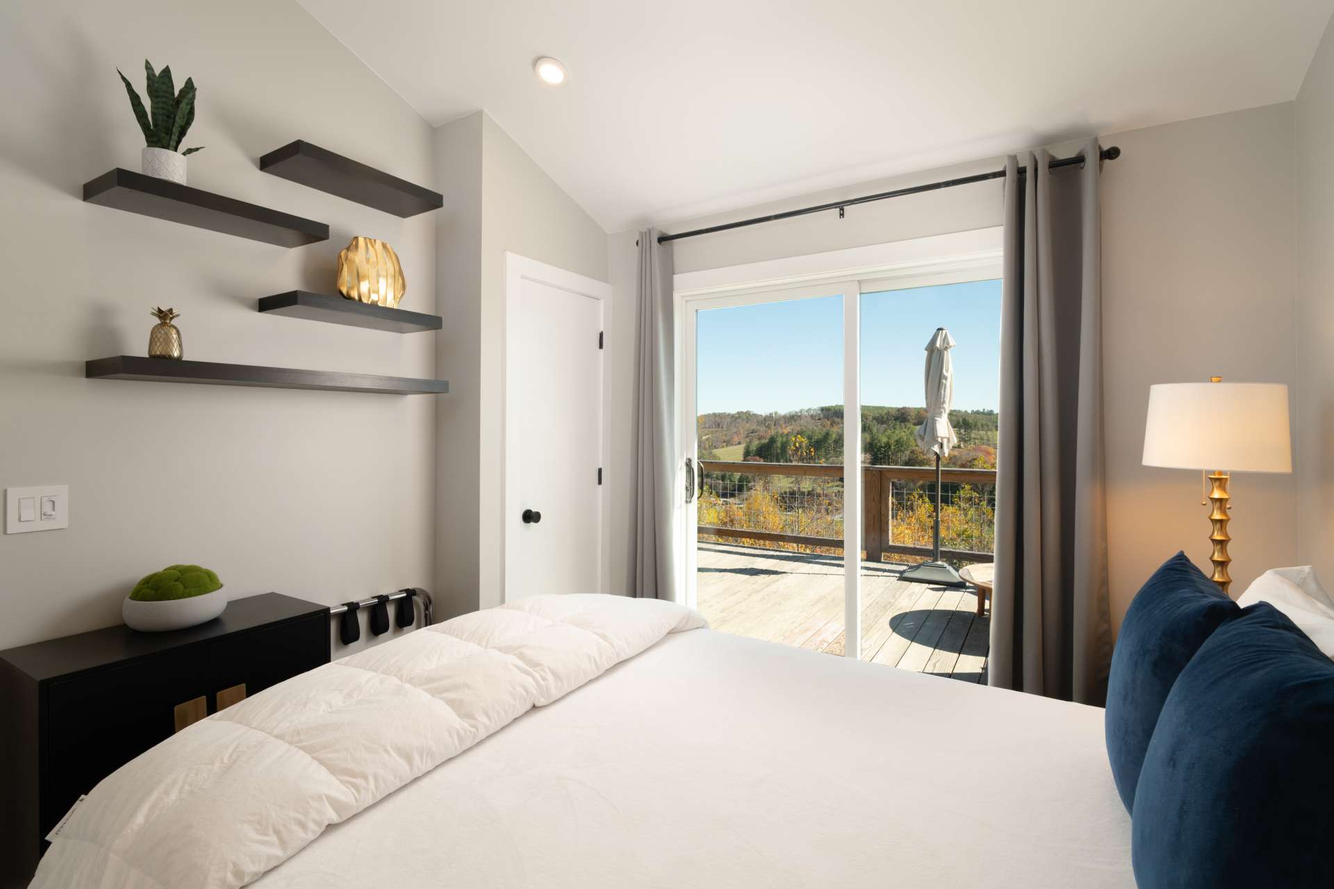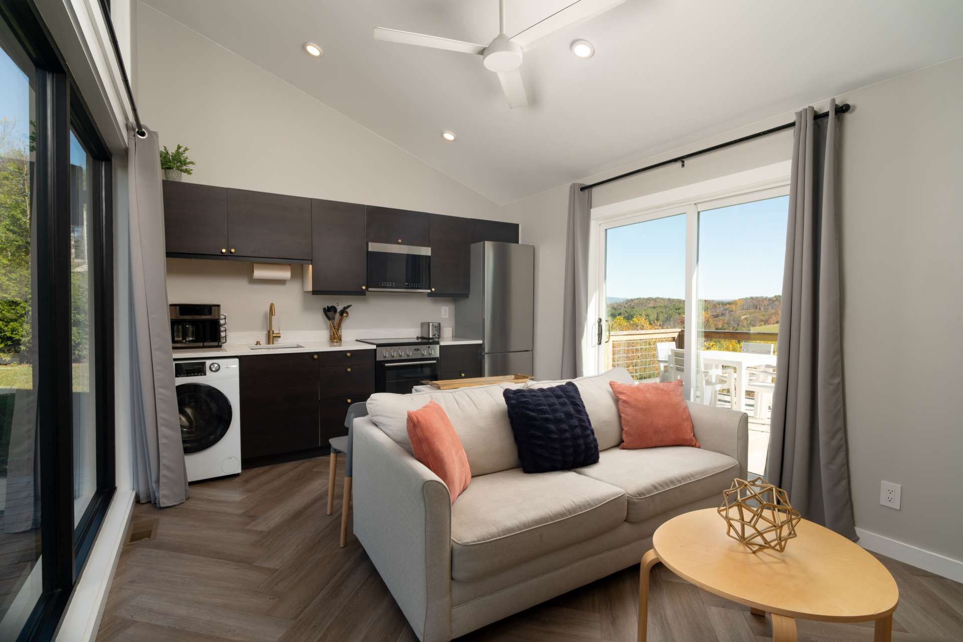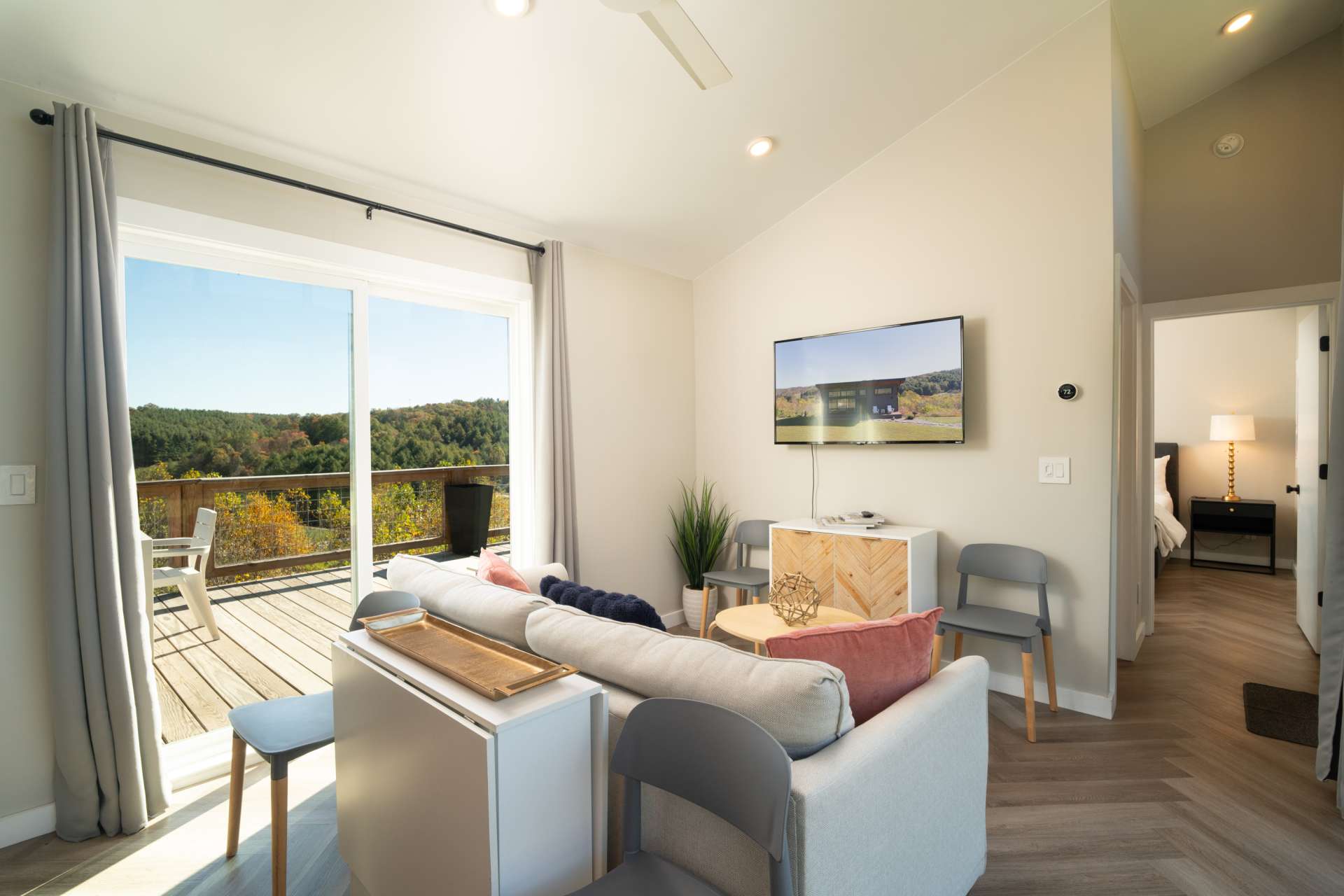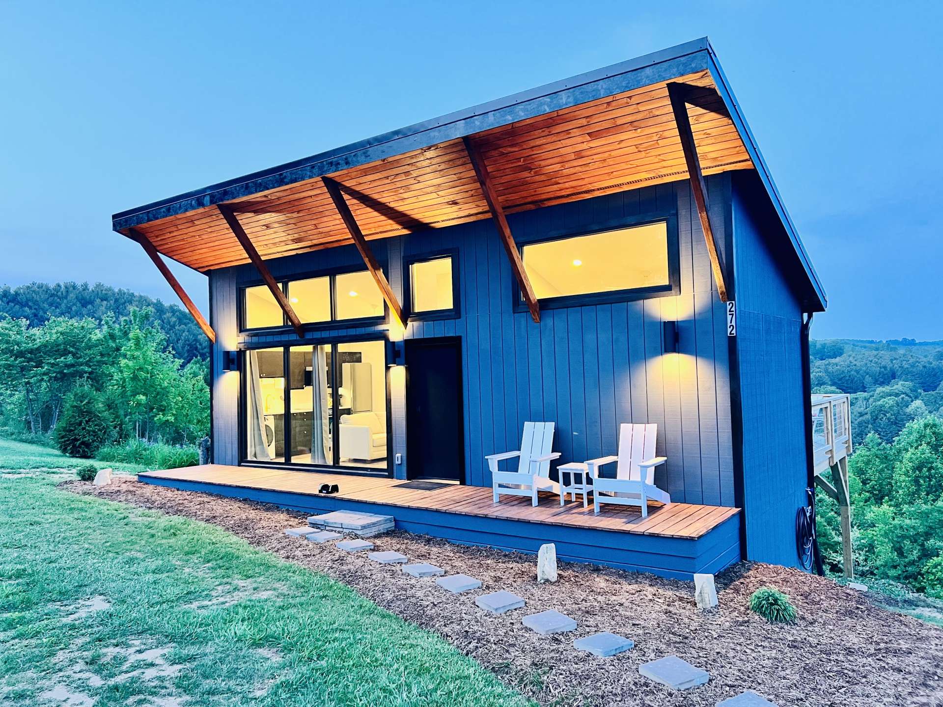 The mountains are calling, and this modern retreat is the quintessential getaway spot! Perched on a ridge overlooking the surrounding Blue Ridge Mountains and the New River, you'll feel as if you're stepping onto the edge of the world the moment you walk in this modern 1-bedroom, 1-bath cabin. The floor-to-ceiling windows invite nature in, seamlessly blending the indoors with the stunning surroundings. Every detail has been thoughtfully designed to create a luxurious, private escape you’ll return to time and time again. Whether you're relaxing in the living room, resting in the cozy bedroom, or lounging on the oversized back deck, the long-range mountain and river scenery is always in sight. The entire space is on one level and sits on 1.5 acres of rolling mountain land that gives you plenty of outdoor space to enjoy. Spot your favorite constellations and shooting stars sitting by the fire pit, play catch in the yard, or simply relax on the back deck. The NC Mountain home comes luxuriously furnished, and everything is included right down to the dishes and linens. All you have to do is pack a bag! The home has been a highly successful Airbnb and would most probably pay for itself should you want to continue with rentals. The New River is within walking distance for kayaking, tubing, and fishing, and hiking abounds with Grayson Highlands State Park just one of many parks nearby. Don't let this opportunity pass you by, book your showing today for our listing W140!