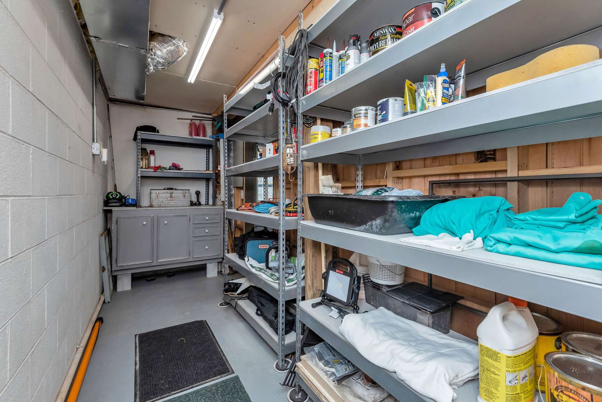 A storage area, concealed with sliding barn doors in the bonus room, offers practical storage solutions for seasonal items, outdoor gear, or household essentials.