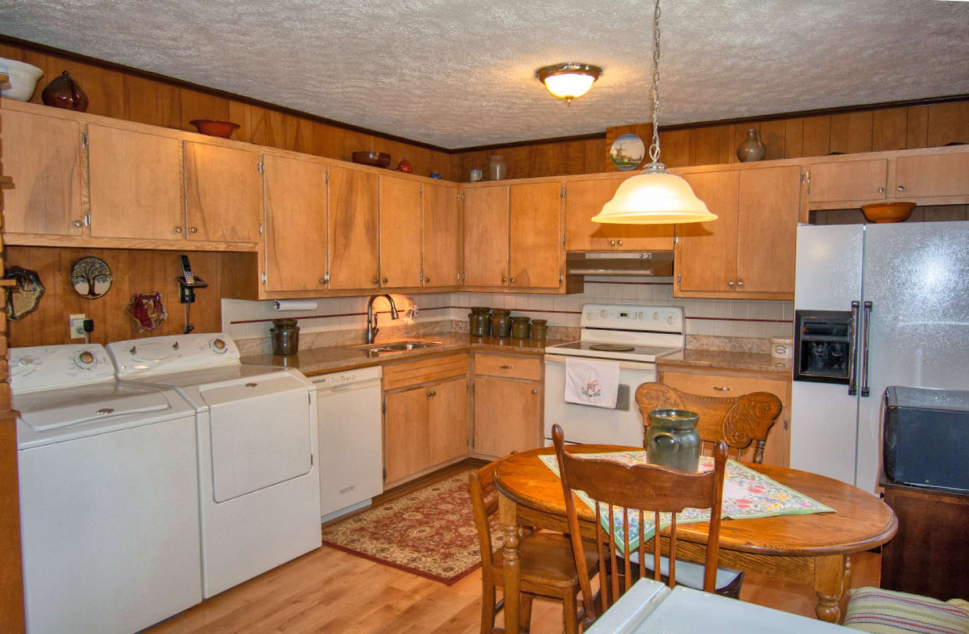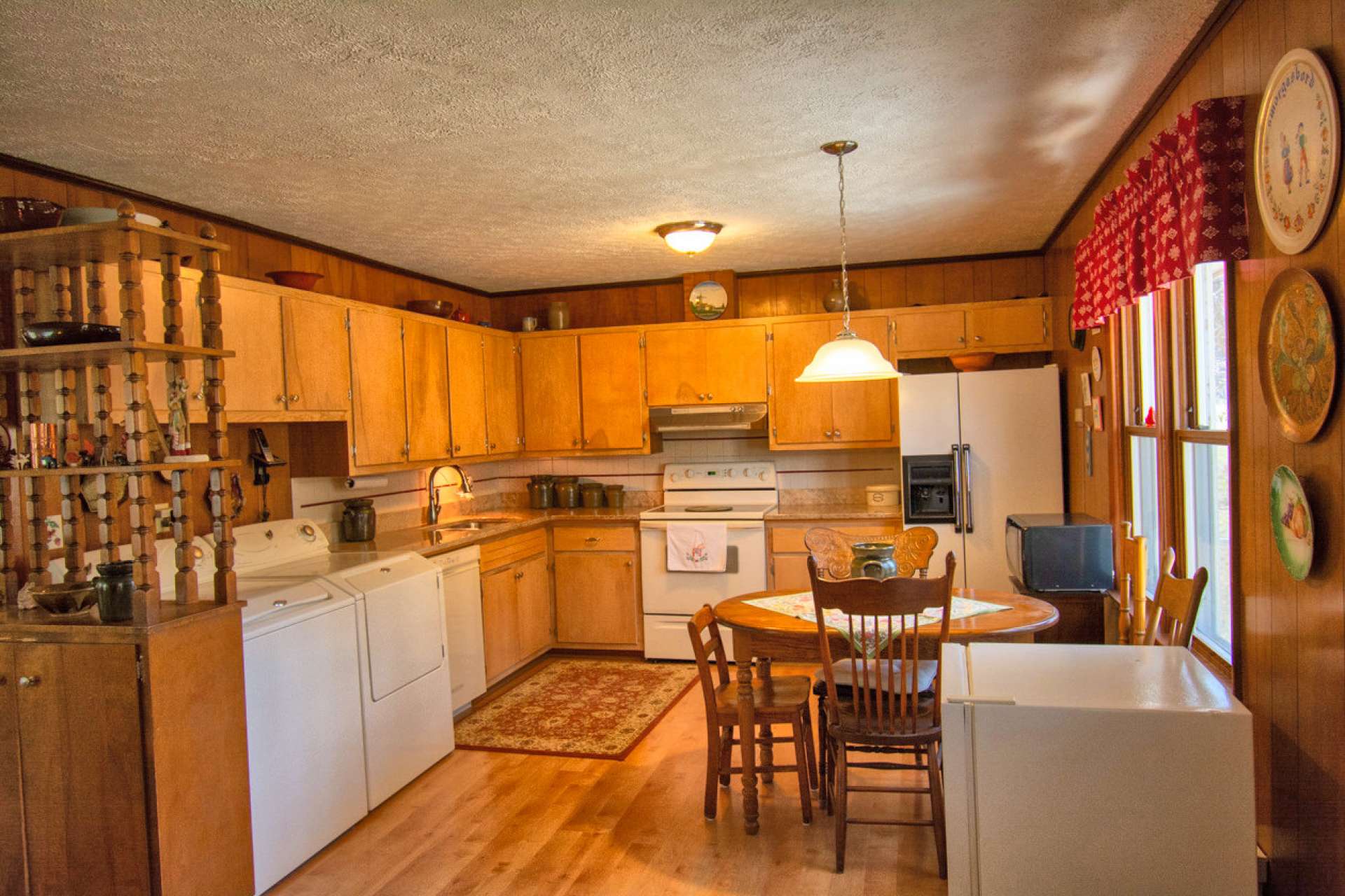 One-Level Living with Creek Frontage and a Prime Location! Conveniently located just off Hwy. 221 and only 2.6 miles from Hwy. 421, this charming one-level home offers the perfect balance of privacy and accessibility—only 15 minutes from West Jefferson and 18 minutes from Boone. A picturesque circle drive, with mature rhododendrons, provides a natural barrier from the road and enhances the home’s curb appeal. Inside, the open-concept living and dining area features a brick fireplace with gas logs, which could potentially be converted back to wood-burning. The kitchen boasts abundant cabinetry and granite countertops, offering ample prep and storage space. The primary bedroom includes a small but full bath with a tiled shower, while two additional bedrooms share a second full bath. While the home could benefit from some updating and personal touches, it boasts good bones and an encapsulated crawlspace to ensure lasting protection and peace of mind. A handicap-accessible ramp on the front provides convenience, while the large, level yard—plus an additional vacant lot behind—creates the perfect space for children, pets, and/or gardening. All furniture and furnishings, and contents of outbuilding, including riding mower, are included with the exception of several pieces of Ben Owen pottery. Home is being sold AS-IS. Don't miss out on this charming, well-built home—move-in ready as-is or perfect opportunity to refresh and make it your own! Home is in 100-year flood plain. No water entered the house during the hurricane; however, there is evidence that it did enter the crawlspace in the form of a thin layer of sediment on top of the plastic. The area appears to be completely dry at this time. Call today to schedule an appointment to view our listing L115.