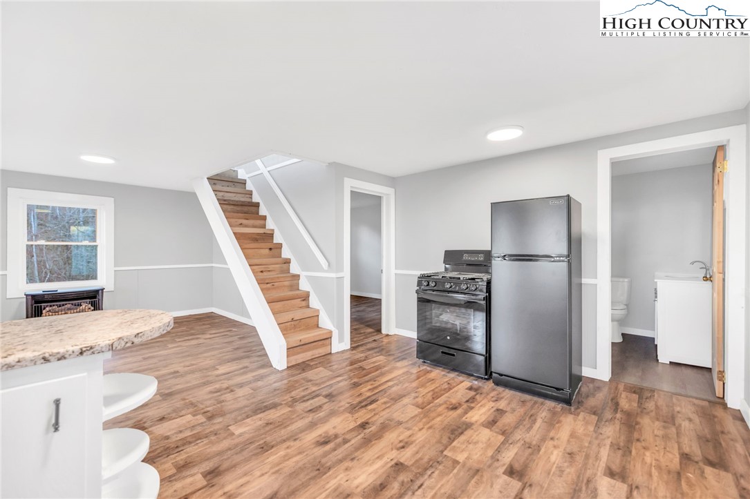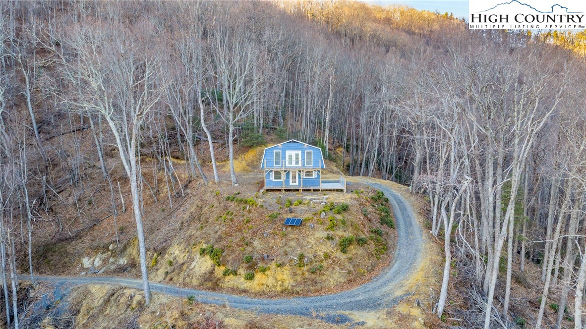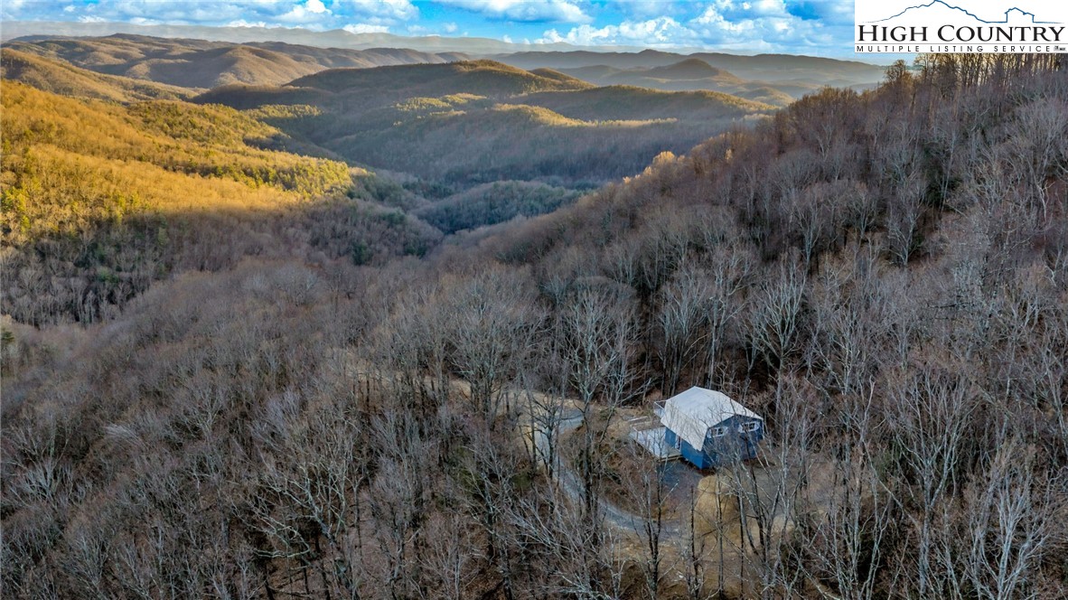 Off-Grid Home with Phenomenal Long Range Layered Views, with just under 21 acres of land. Located less than 2 miles off the Blue Ridge Parkway, across the Ashe County line into Wilkes County with easy access to the Mountain to Sea Hiking Trail. Formerly a hunting cabin and no construction permits found. Home was updated considerably within the last year including fresh interior and exterior paint, new decks for outdoor enjoyment, luxury vinyl flooring throughout, updated kitchen and bathroom, new propane range and refrigerator, new light fixtures, propane fireplace and tankless water heater. Home does not have conventional electricity and is powered by solar and propane all recently added and pre wired for a propane generator. Main level consists of kitchen, living room, 1 Bedroom, 1 Bathroom and upper level has 2 bedrooms and additional living space. Upper and lower decks to enjoy the stunning long-range views. Surrounded by nature, no other homes in sight. ATV trails and abundant wildlife, perfect for outdoor enthusiasts. Larger creek on the lower side of the property, accessible by foot or ATV. Likely does not qualify for a residential mortgage; suitable for a land loan. Additional Acreage Available if desired. Marketable timber and recent timber cruise. Approximately 20 minutes to thriving downtown West Jefferson, offering local shops, art galleries, and restaurants and breweries. Also approximately 20 minutes to both Sparta and North Wilkesboro. See today