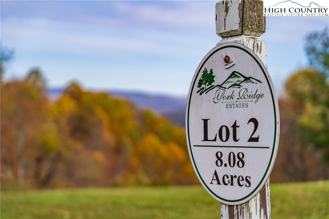 Welcome to York Ridge Estates. Premier Gated Community in Mouth of Wilson, VA about 30 minutes north of West Jefferson. Community offers larger lots , minium of 5 acres in size , big long range views. Lot 2 starts on your left , just past lot 1 after you enter the community. Long road frontage on lot 2, allows for multipe locations for start of driveway. Opened up area towards the end of lot 2, with view already cleared is a prime building site. 1600 SF min, with some very nice existing homes already built. Plenty of recreational amenties close by, 10 + minutes from the New River, Grayson Highlands and Mt. Rogers. See Today