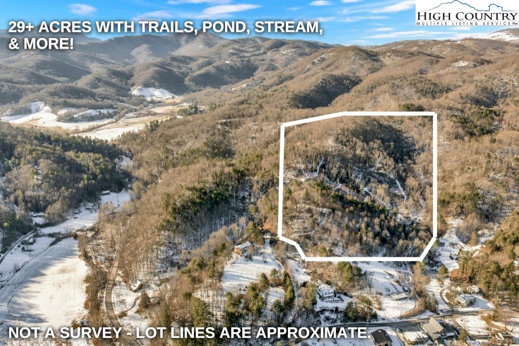 Valle Farm: a rare offering of 29+ acres with an extensive trail system in the heart of Valle Crucis! Located across the road from the Original Mast General Store, and with wooded acreage and long-range, layered Blue Ridge Mountain views at high elevations, this tract offers the potential for many different uses. Offering easy access year-round off of state-maintained roads (future driveway to be constructed by future owner), this is the perfect place for a homestead, family estate/legacy property, horse property, or investment opportunity with potential for development or commercial use. The wooded acreage is easily accessible over an extensive trail system and offers a small pond, stream frontage, and good potential homesites with long-range views. With serenity and mountain views year-round, this is the perfect place to enjoy all the High Country has to offer! Property is also being offered with two additional acres including a barn, house, and frontage on NC Highway 194 S.