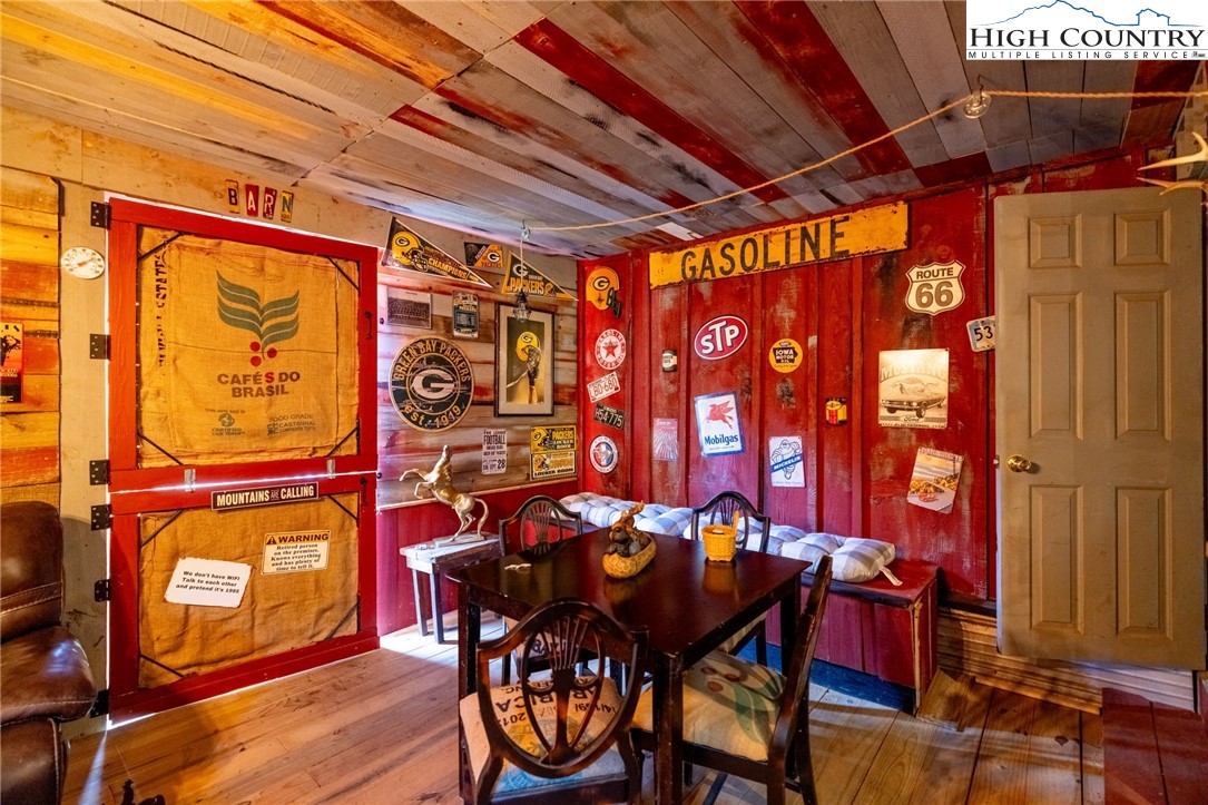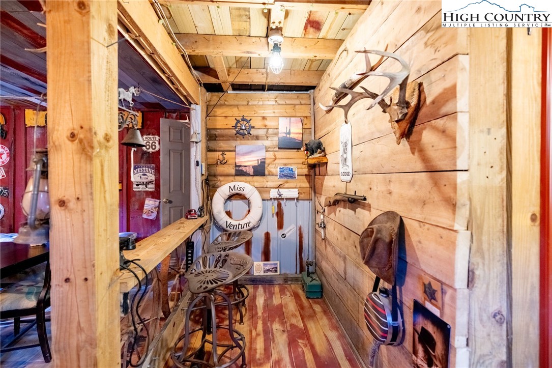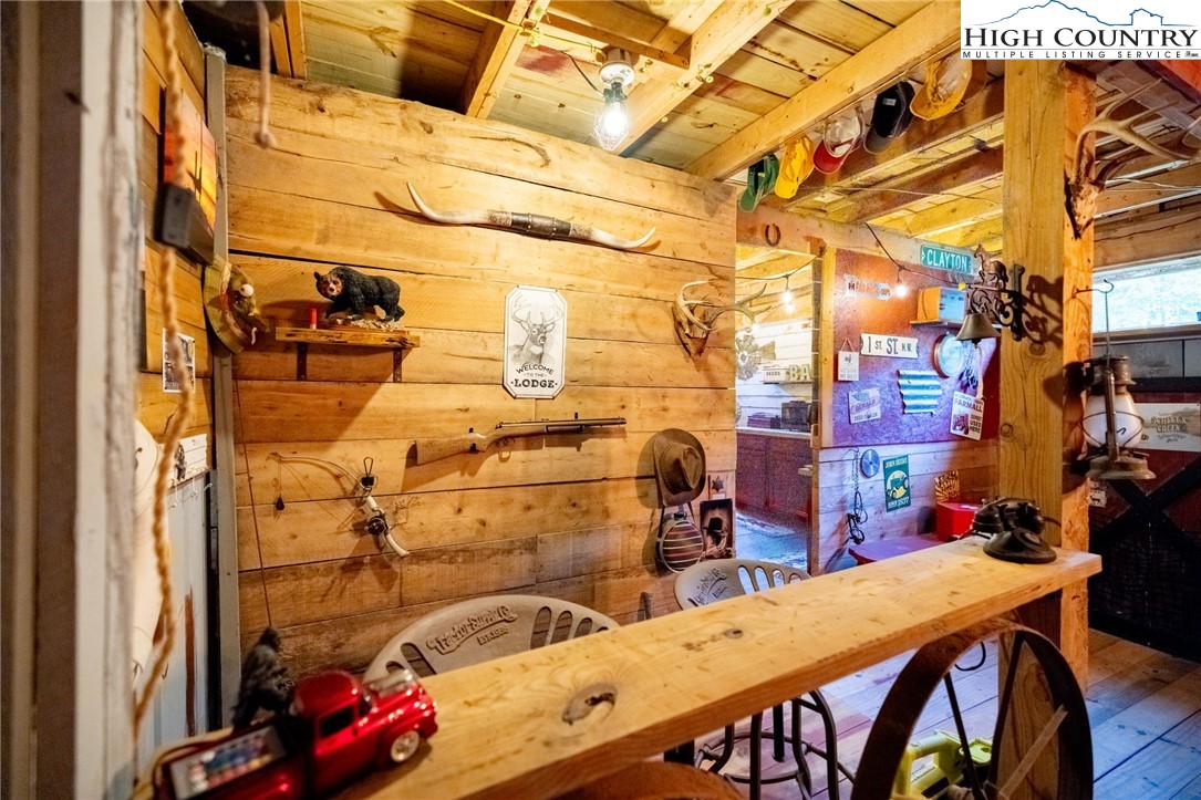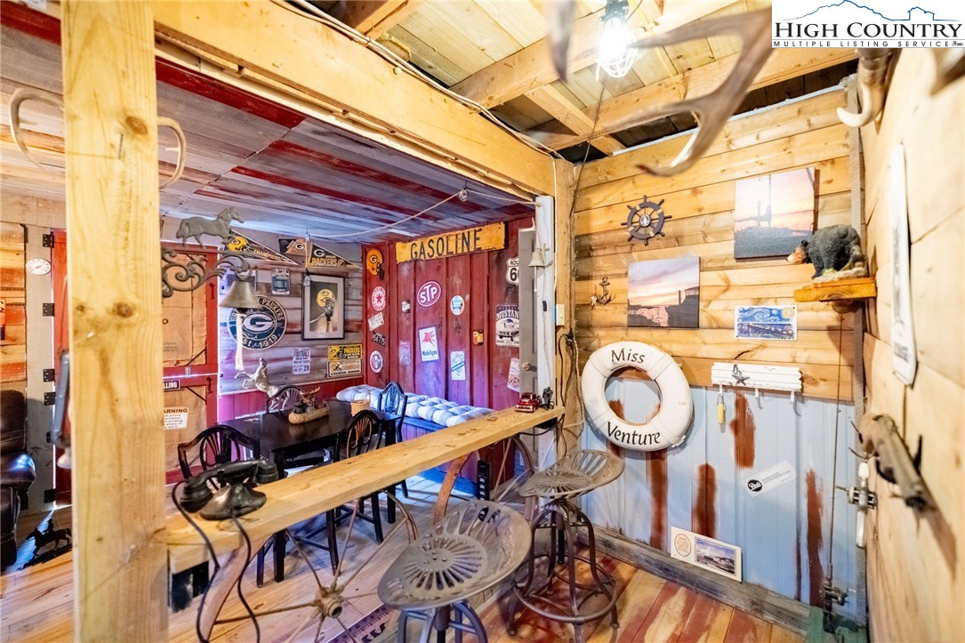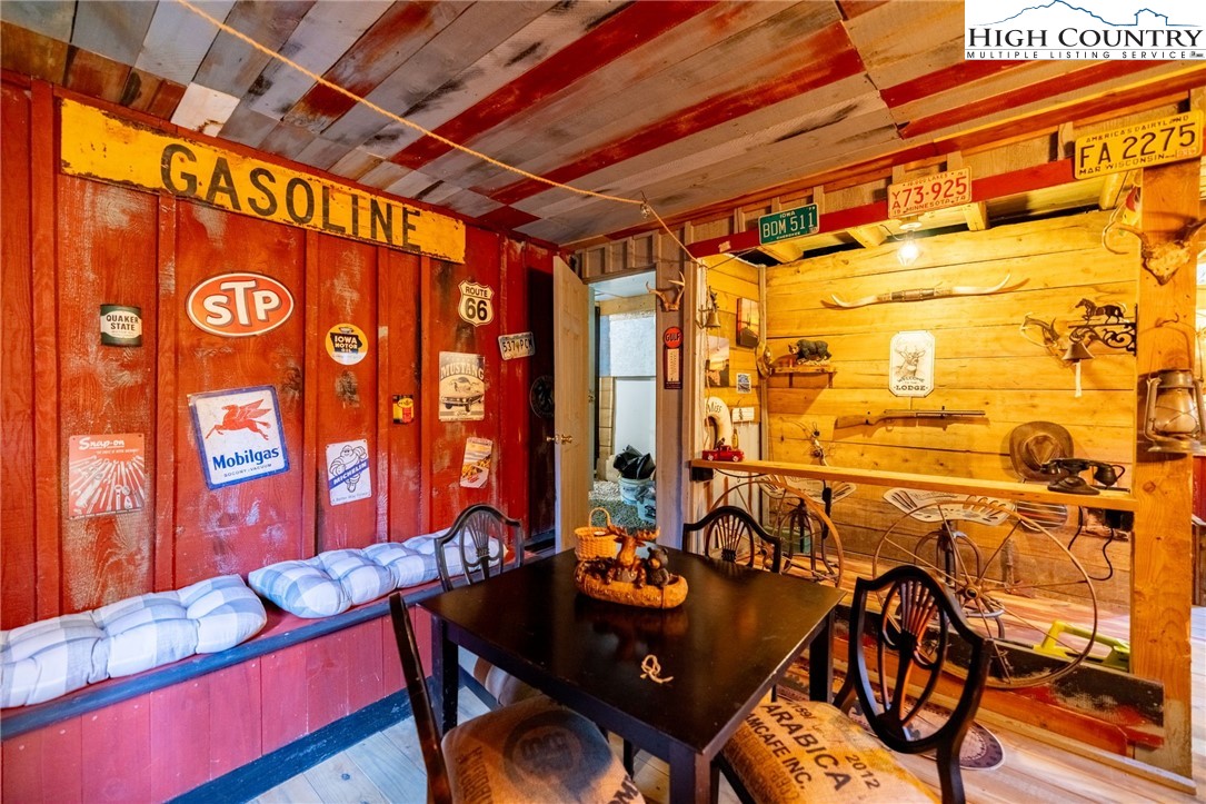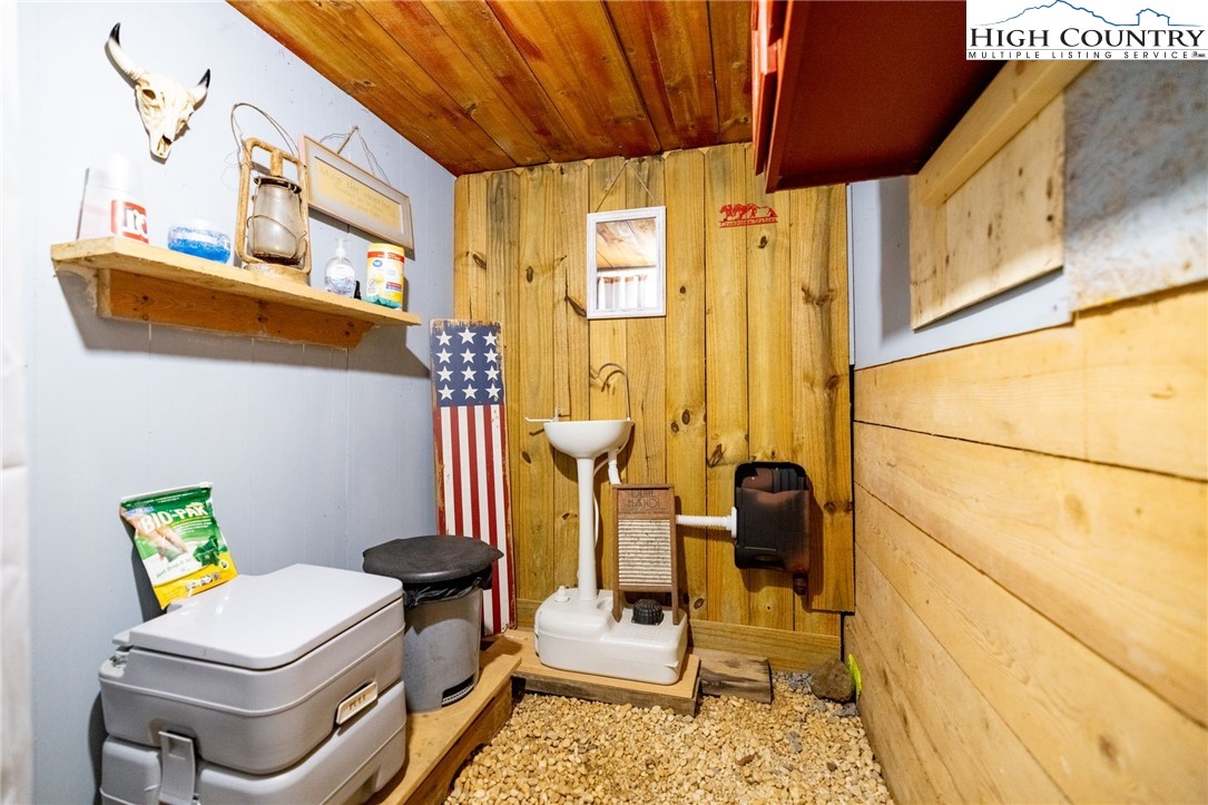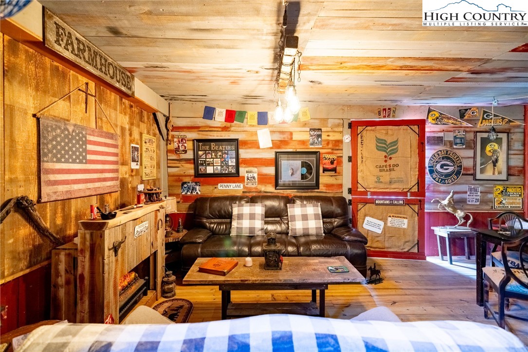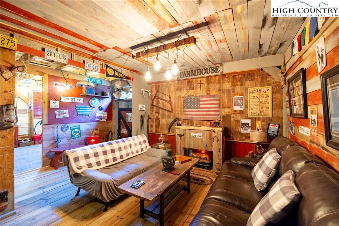 Fully Furnished, Nestled on 2.25 acres of serene land, Creekside Stables offers the perfect blend of relaxation and adventure. Would make a great retreat center, church camp, or airbnd. With a charming creek and pond, this unique property features a converted barn, now a cozy barndominium that comfortably sleeps 8-11 guests. The interior showcases rustic wood and tin finishes, providing a warm, inviting atmosphere, complemented by three electric heaters, including an electric fireplace. The living space includes two dedicated sleeping areas, a comfortable lounge, and an open kitchen and dining space. While there’s no well or septic system installed, the property includes an onsite water storage tank and dispensers, along with a portable commode in a designated bathroom area for convenience. The acreage is ideal for equestrian enthusiasts or a small mini-farm, with fencing on both sides of the road. Located just 10-15 minutes from Jefferson and West Jefferson, and a quick 5-minute drive to Lansing and the New River, this retreat combines rural tranquility with easy access to nearby towns. All of the furniture conveys and and most décor and furnishings remain including 2 refrigerators, 1 mircowave and 1 pizza oven making it ready for you to enjoy!